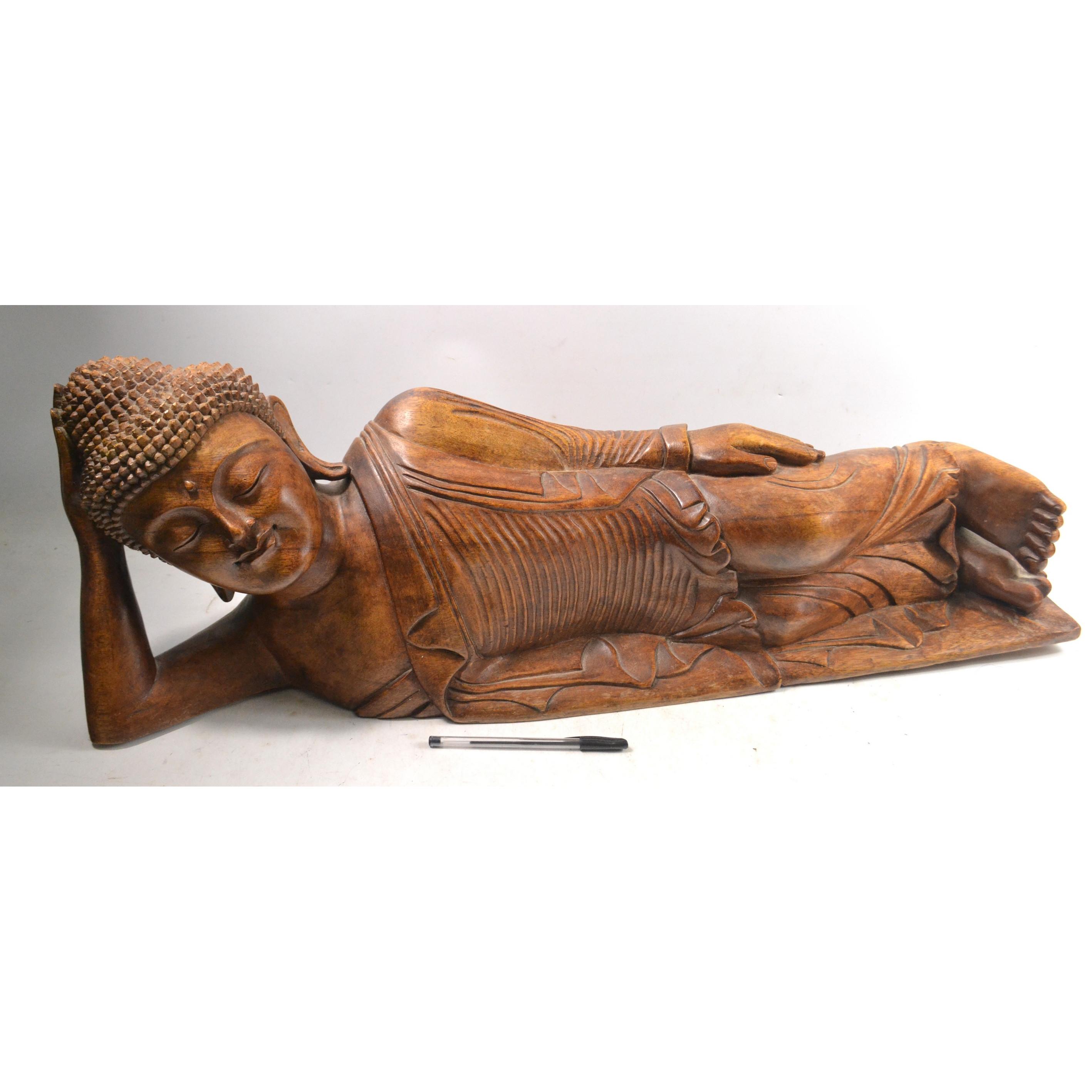 EASTERN HAND CARVED A large STUNNING resting solid wooden BuddhaL: 83cm approx H: 33cm approx Approx 1 pieces