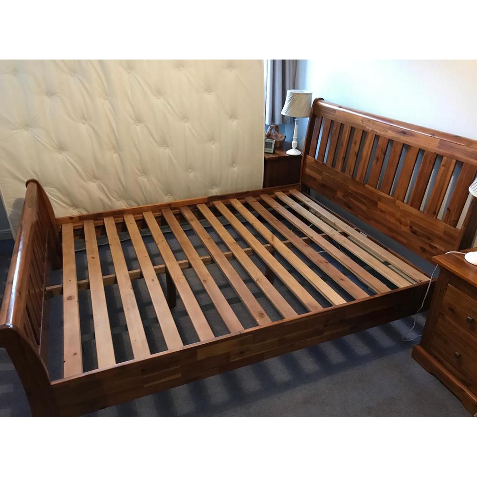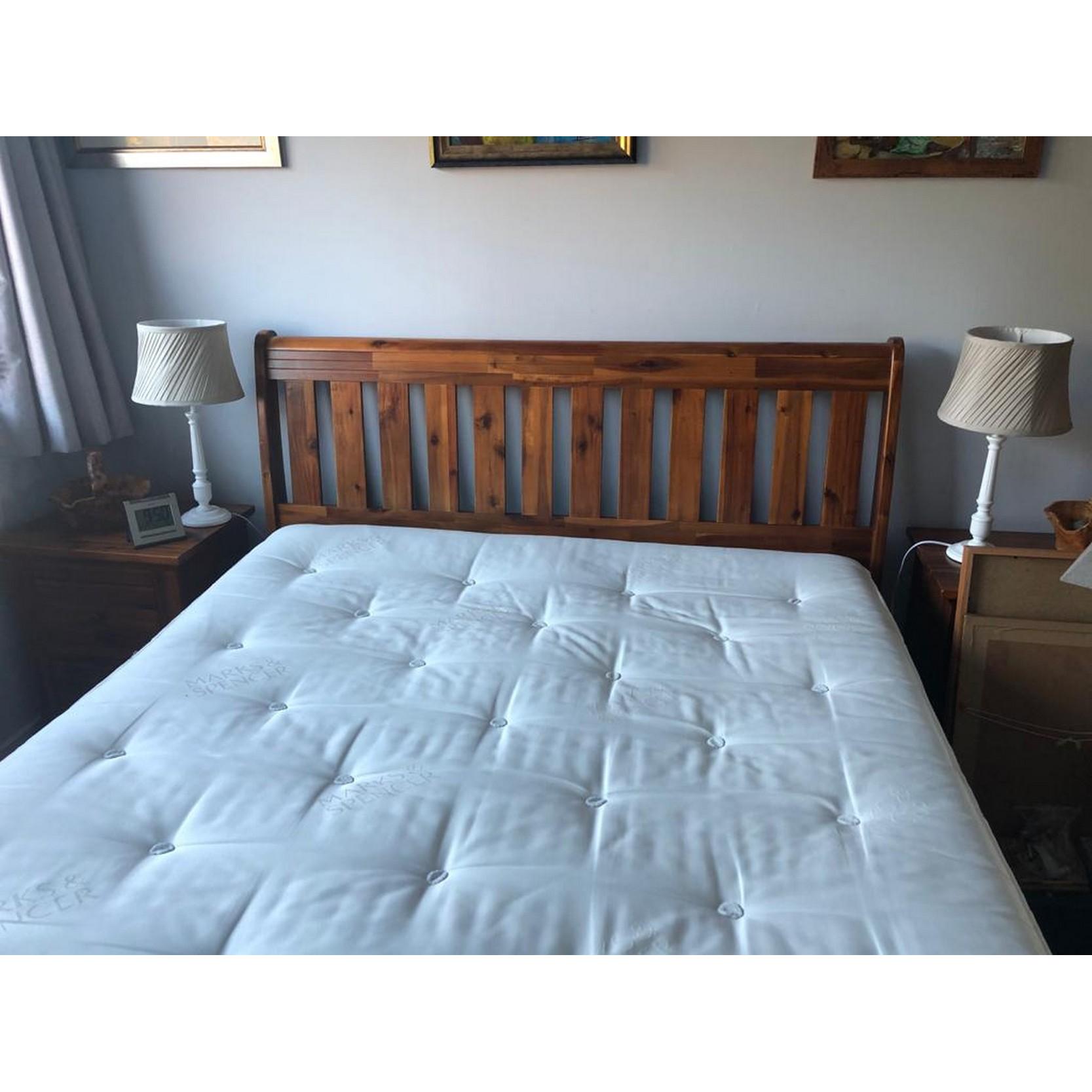 King Size sleigh bed In nice quality wood finish ex Marks & Spencer with a SUPER QUALITY EXPENSIVE MATTRESS bed and mattress cost £1800 when newApprox 2 pieces