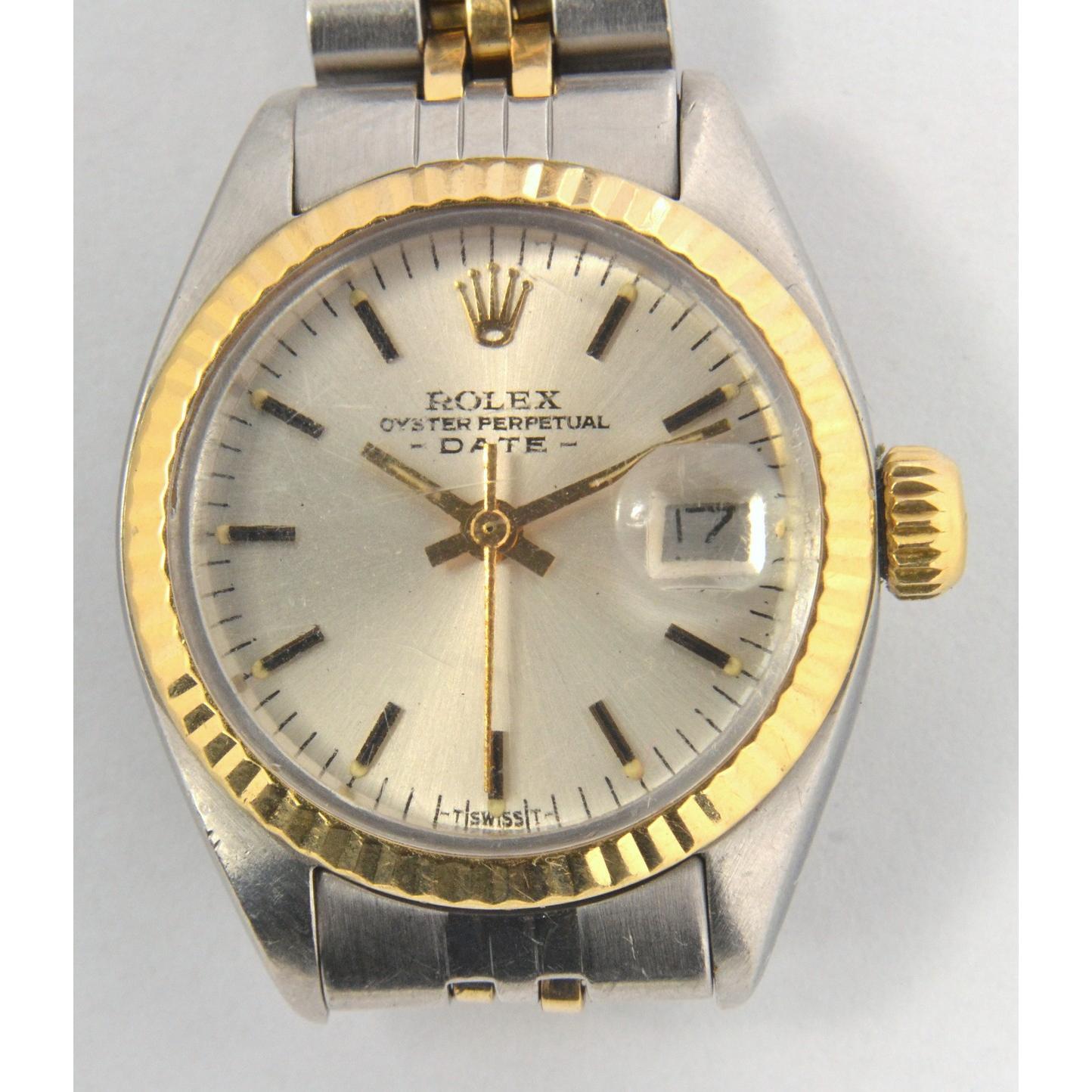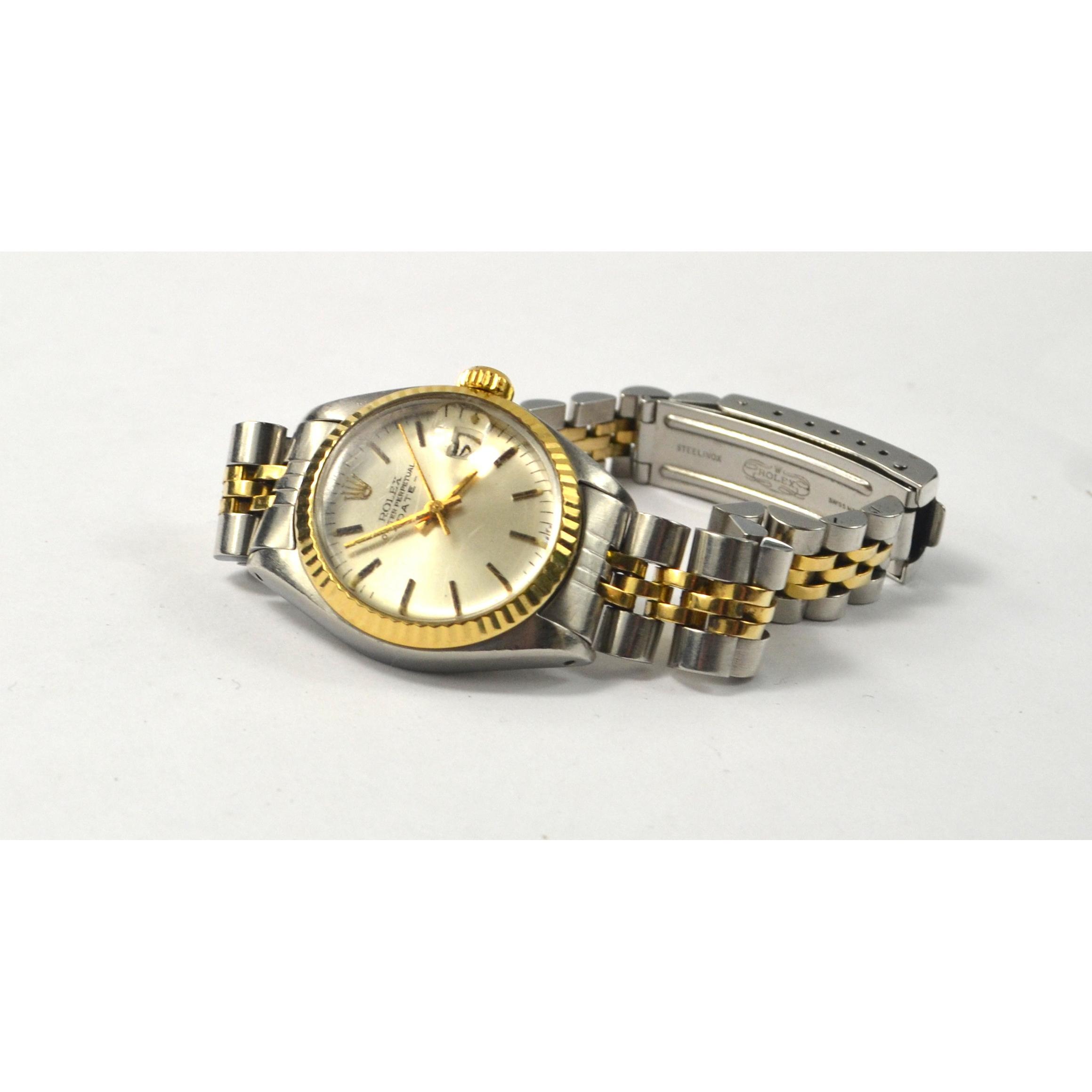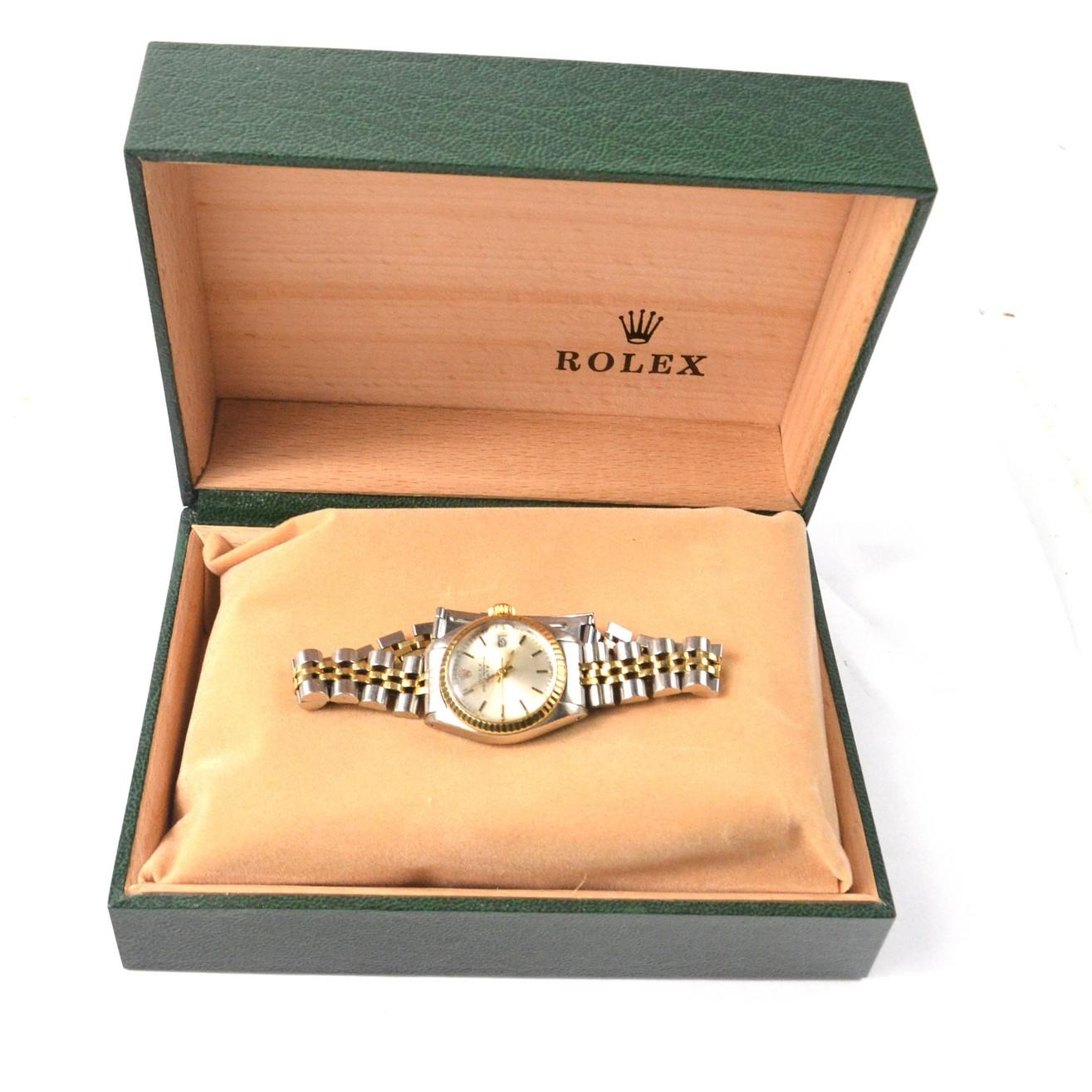 A 1978 ROLEX OYSTER PERPETUAL DATE JUST ladies 18 carat and stainless steel wrist watch with 18ct and stainless steel bracelet and dial etc serial No 5463230 and model No 6917F with original box, no certificates come with the watch, from one owner