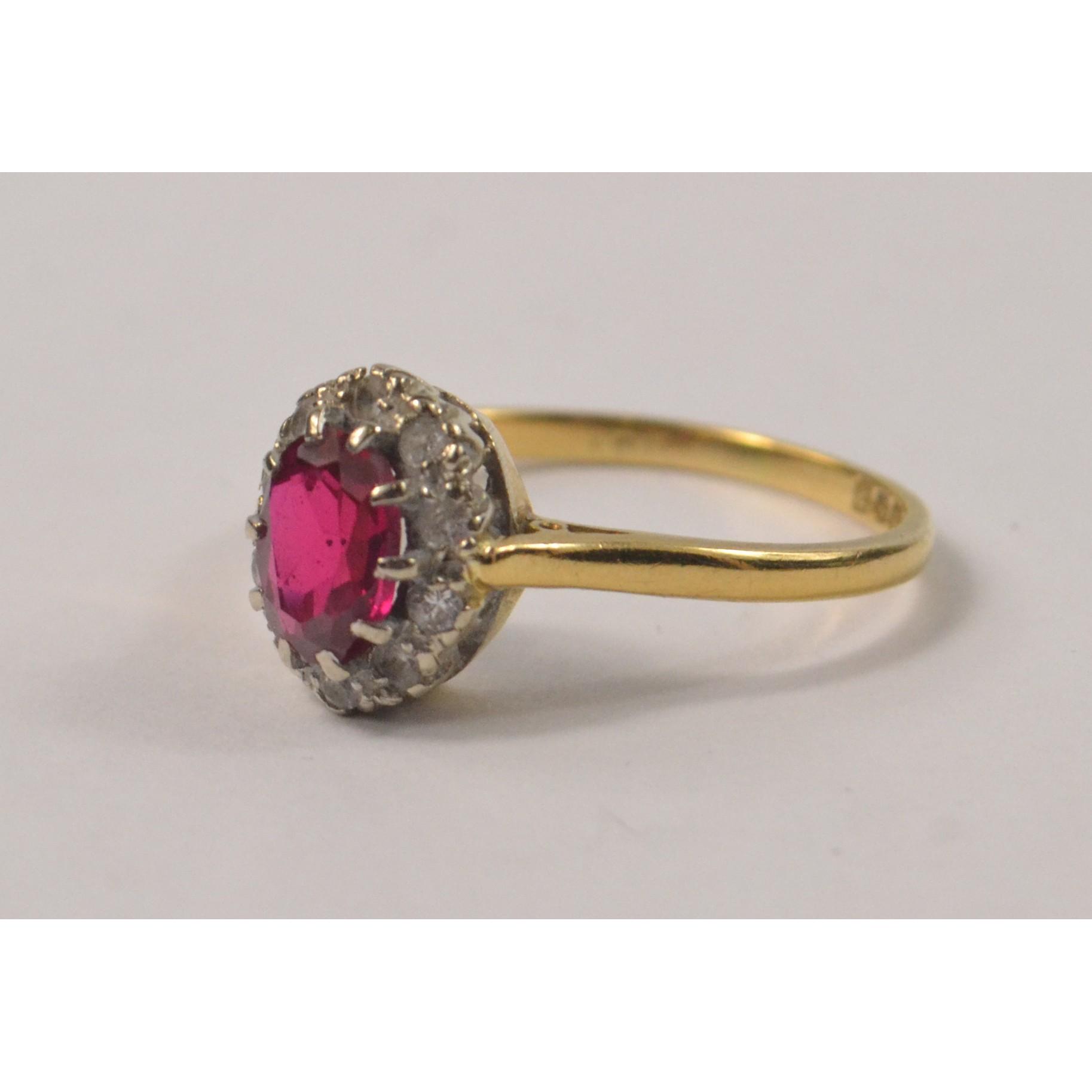 Hallmarked 18ct Yellow Gold Ruby and Diamond oval set ring [ size Q ]Gross weight approx 3.2grm