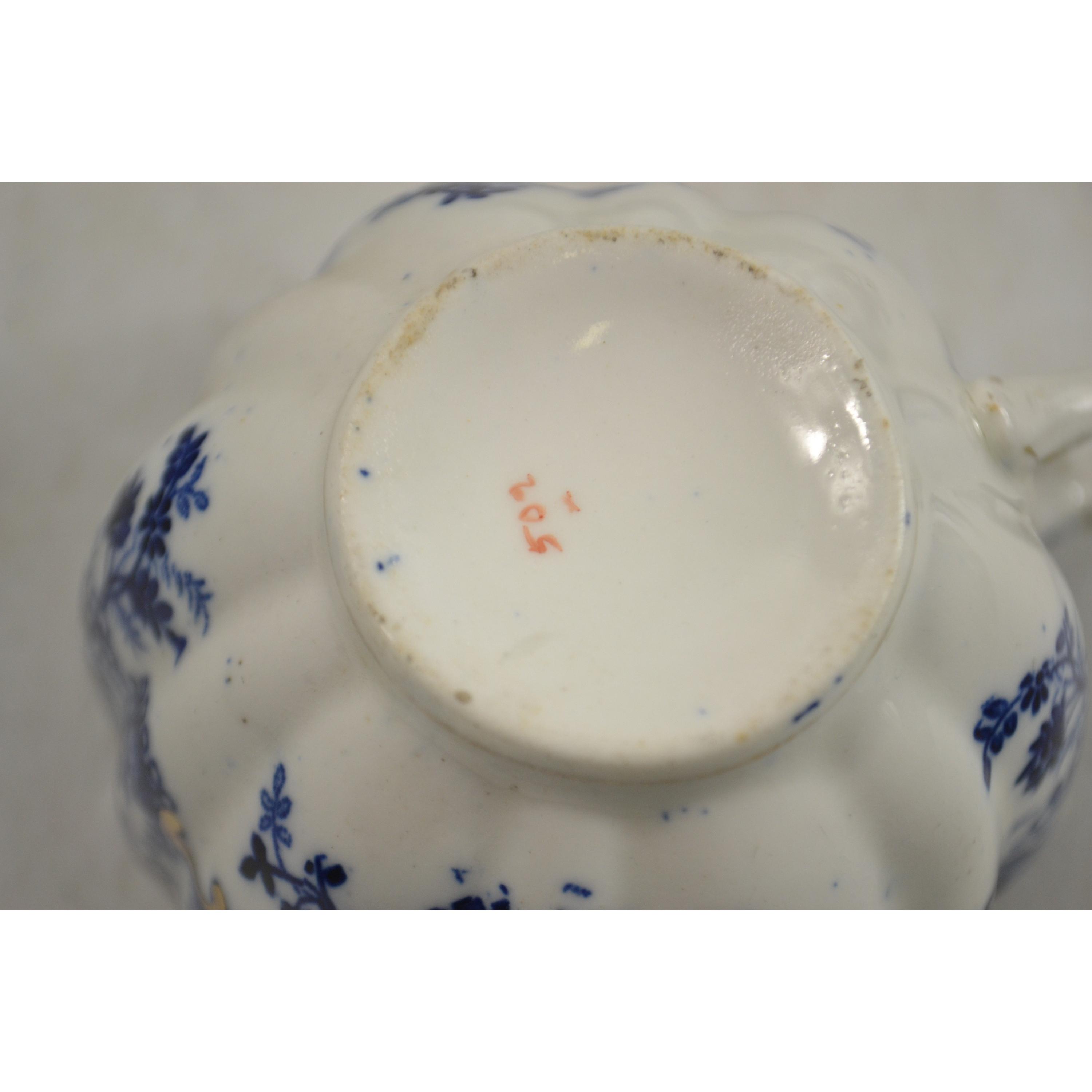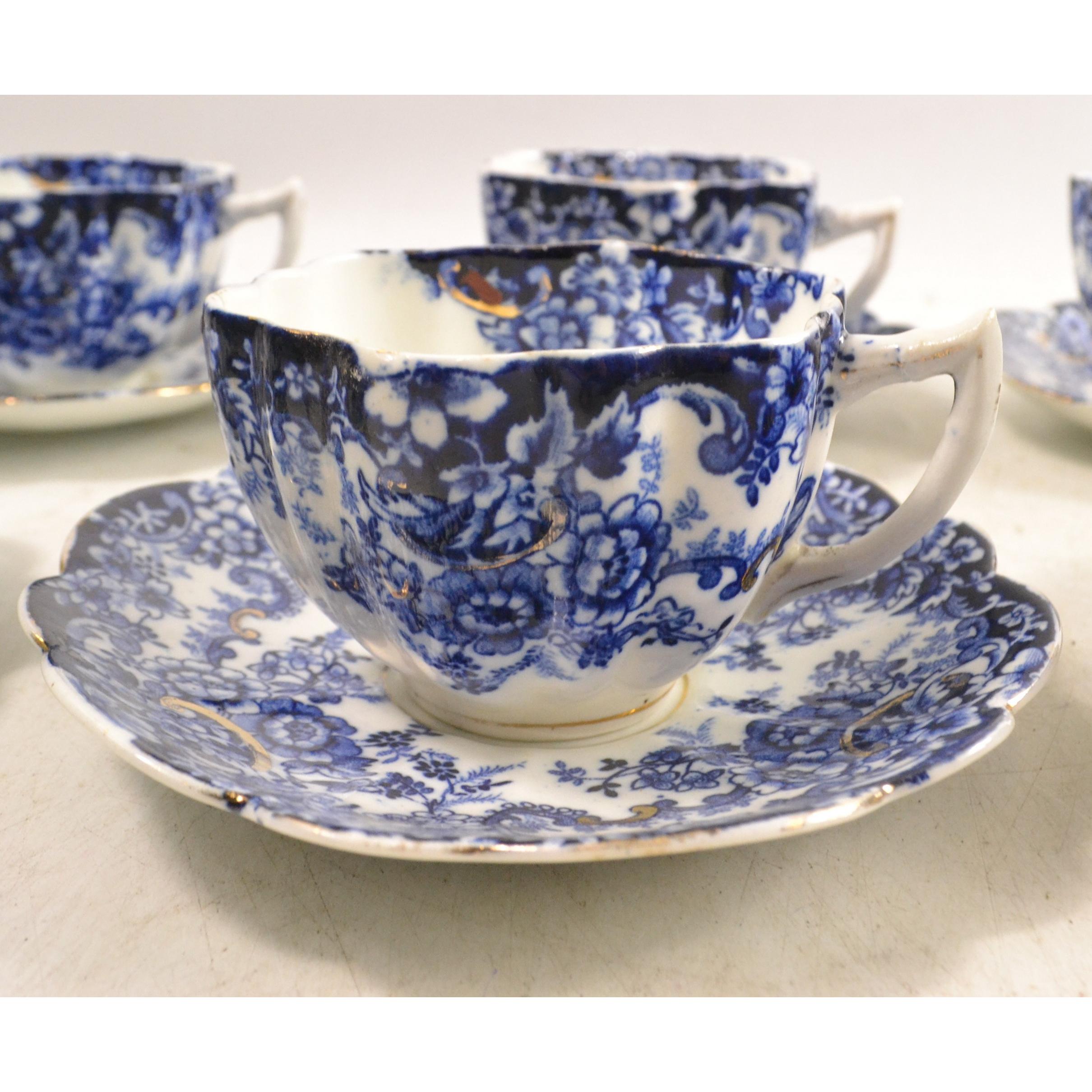 A set of six VICTORIAN hand painted blue and white china cups and saucers in pie-crust form - nice examplesApprox 12 pieces