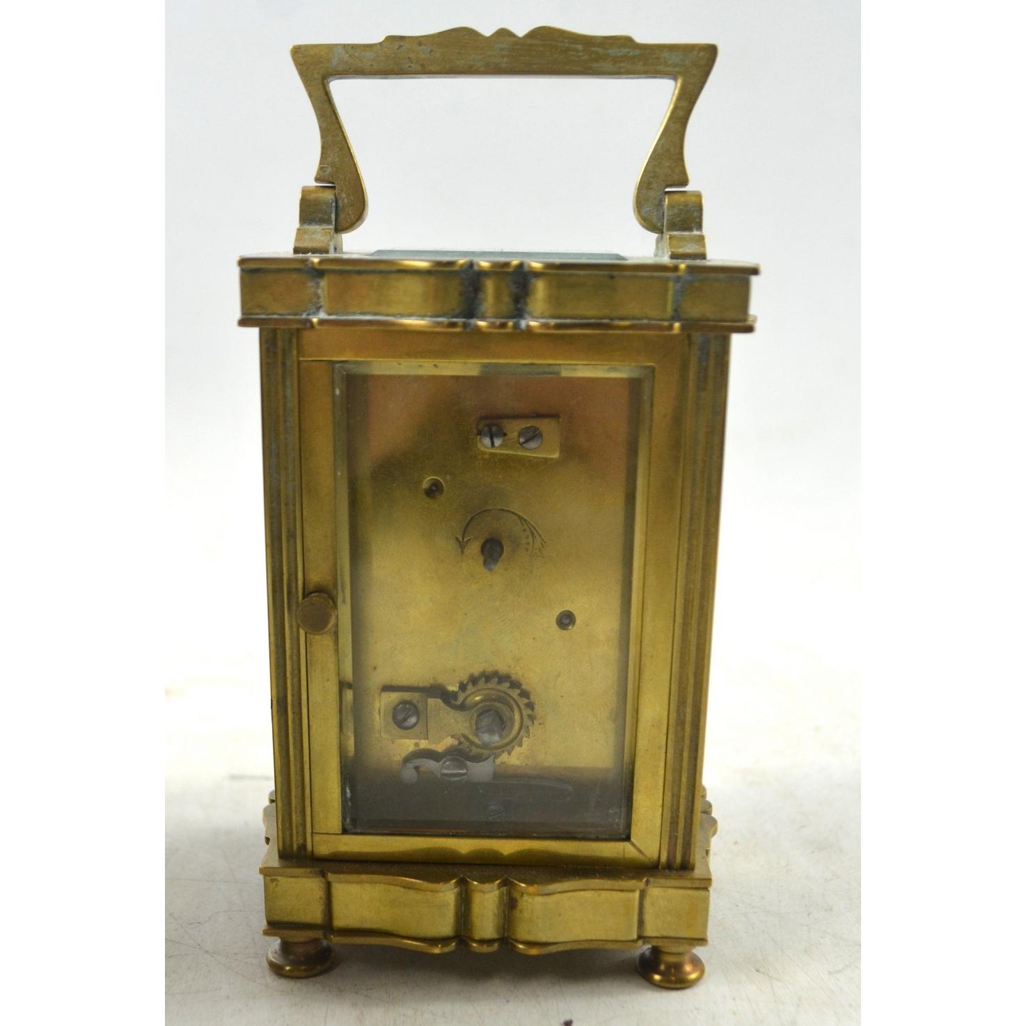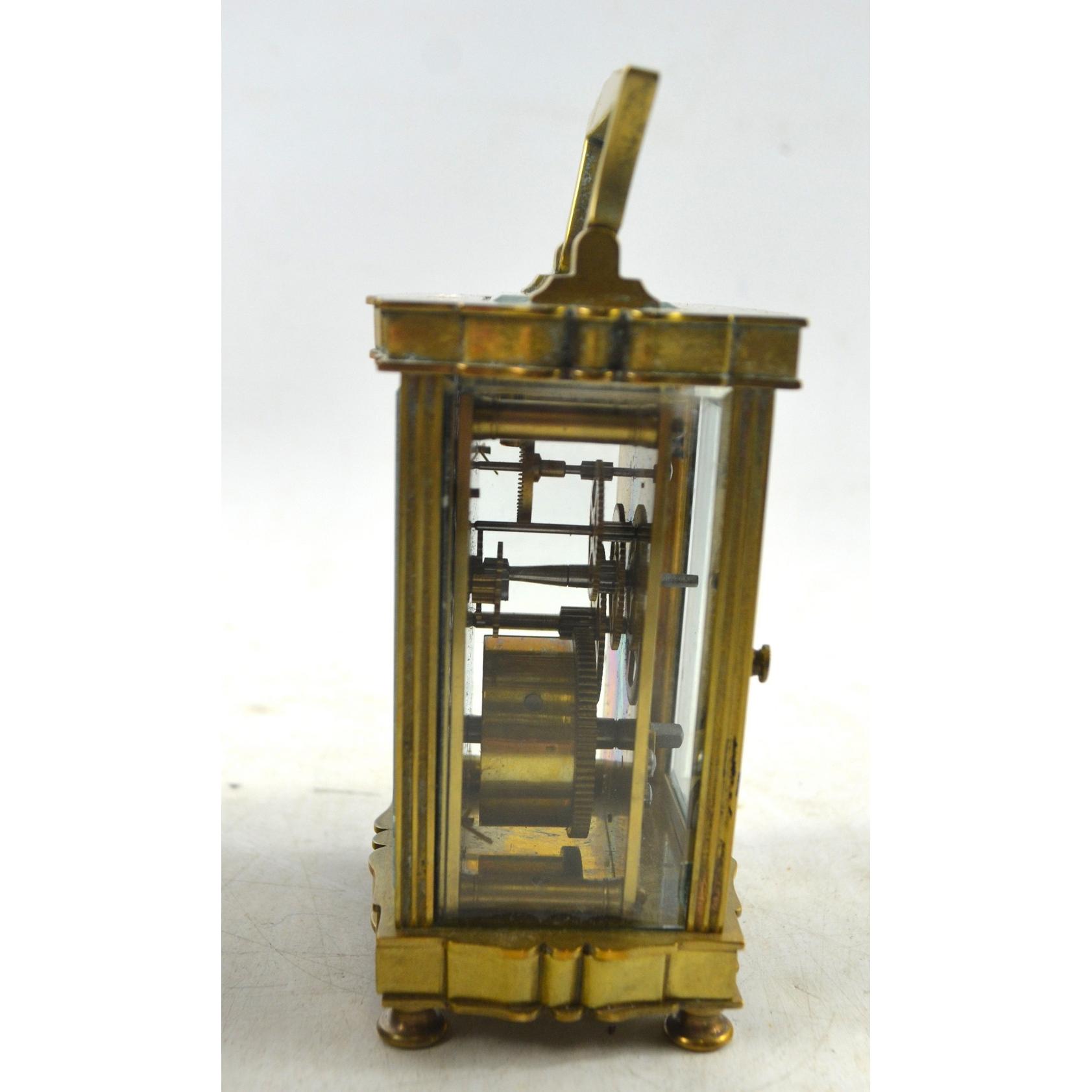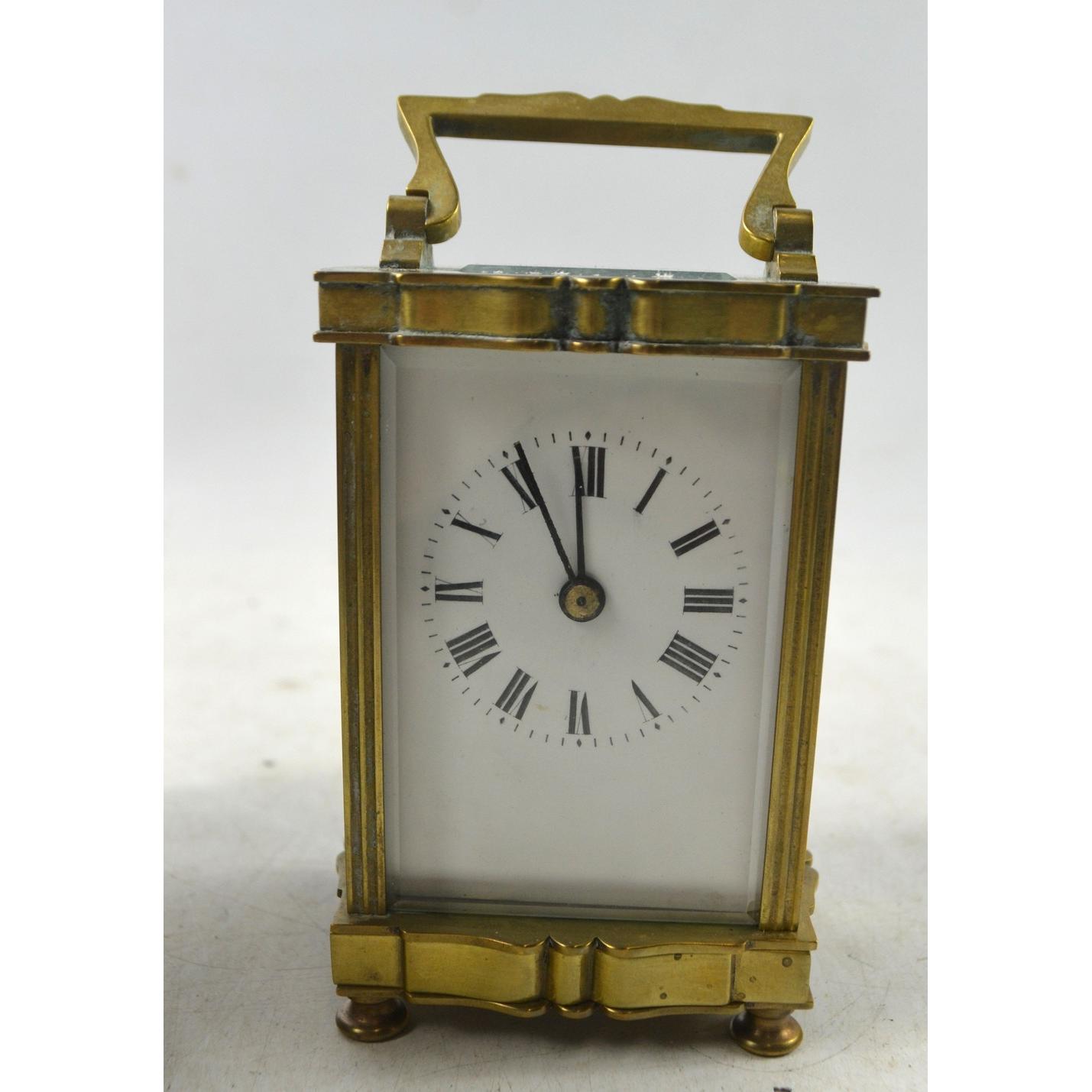 An antique c1880 FRENCH brass carriage clock with original case with two keys, one winding and the other adjusting the time mechanism Approx 2 pieces