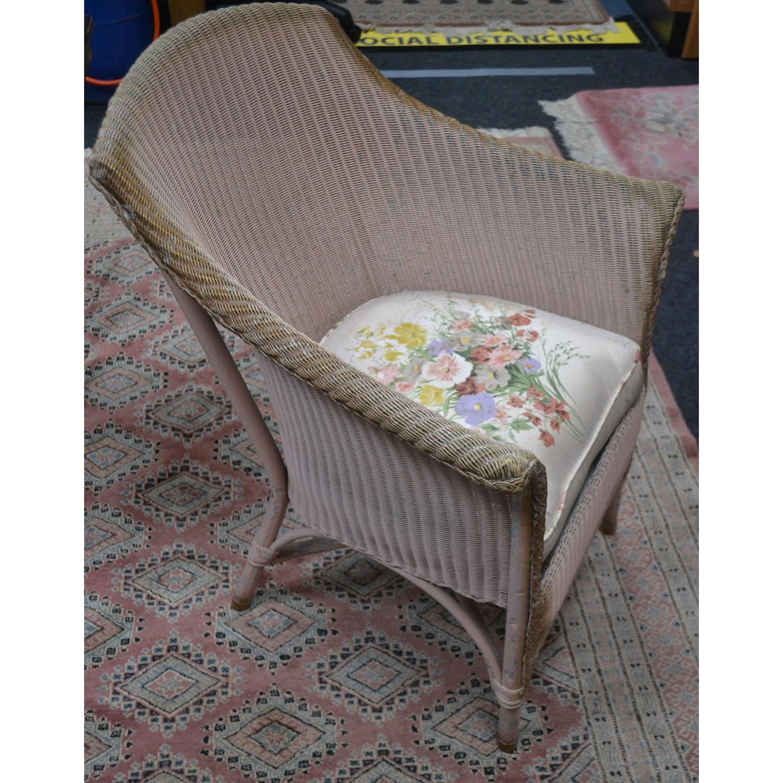 A vintage c 1920's LLOYD LOOM chair in nice condition for it's age with a comfortable seat pad