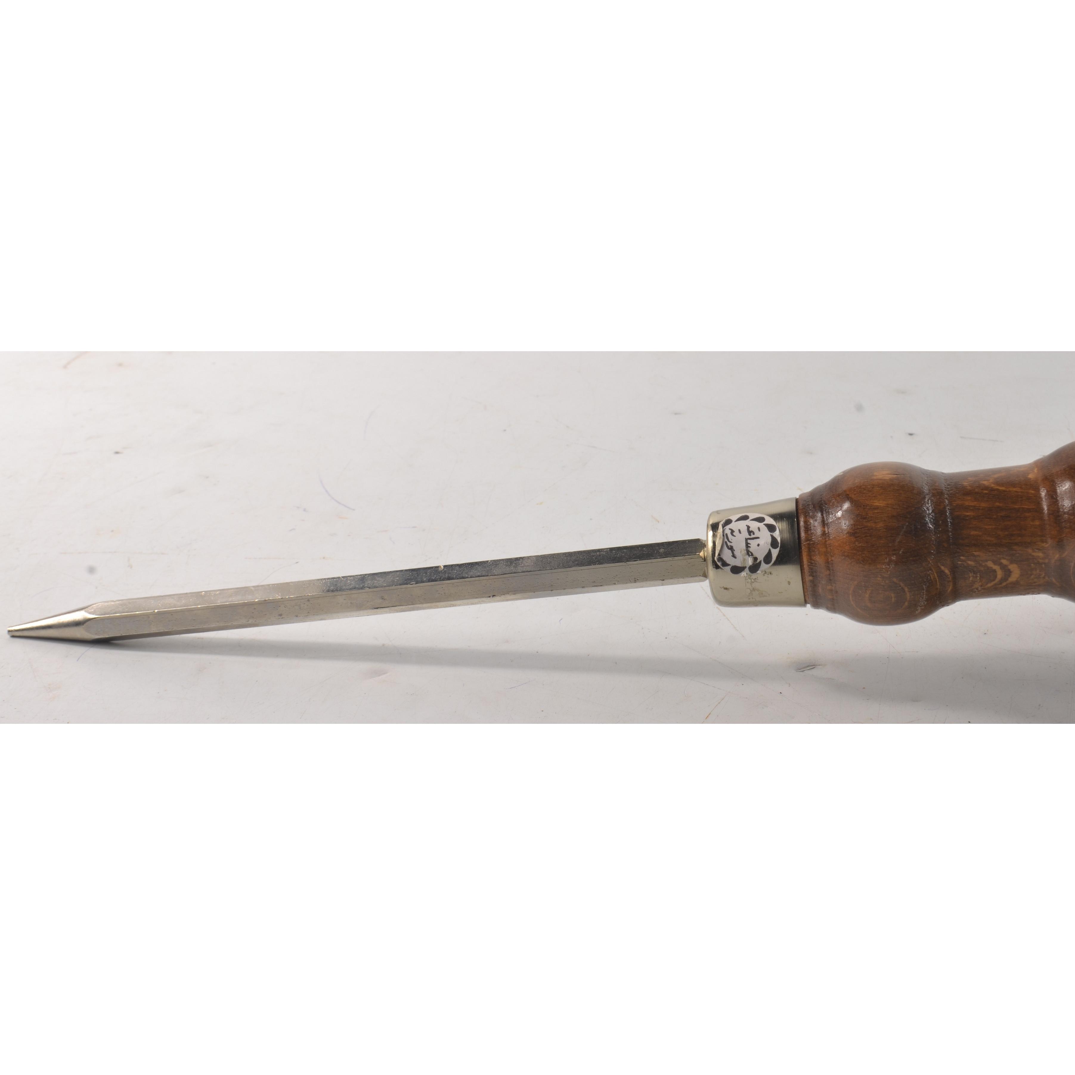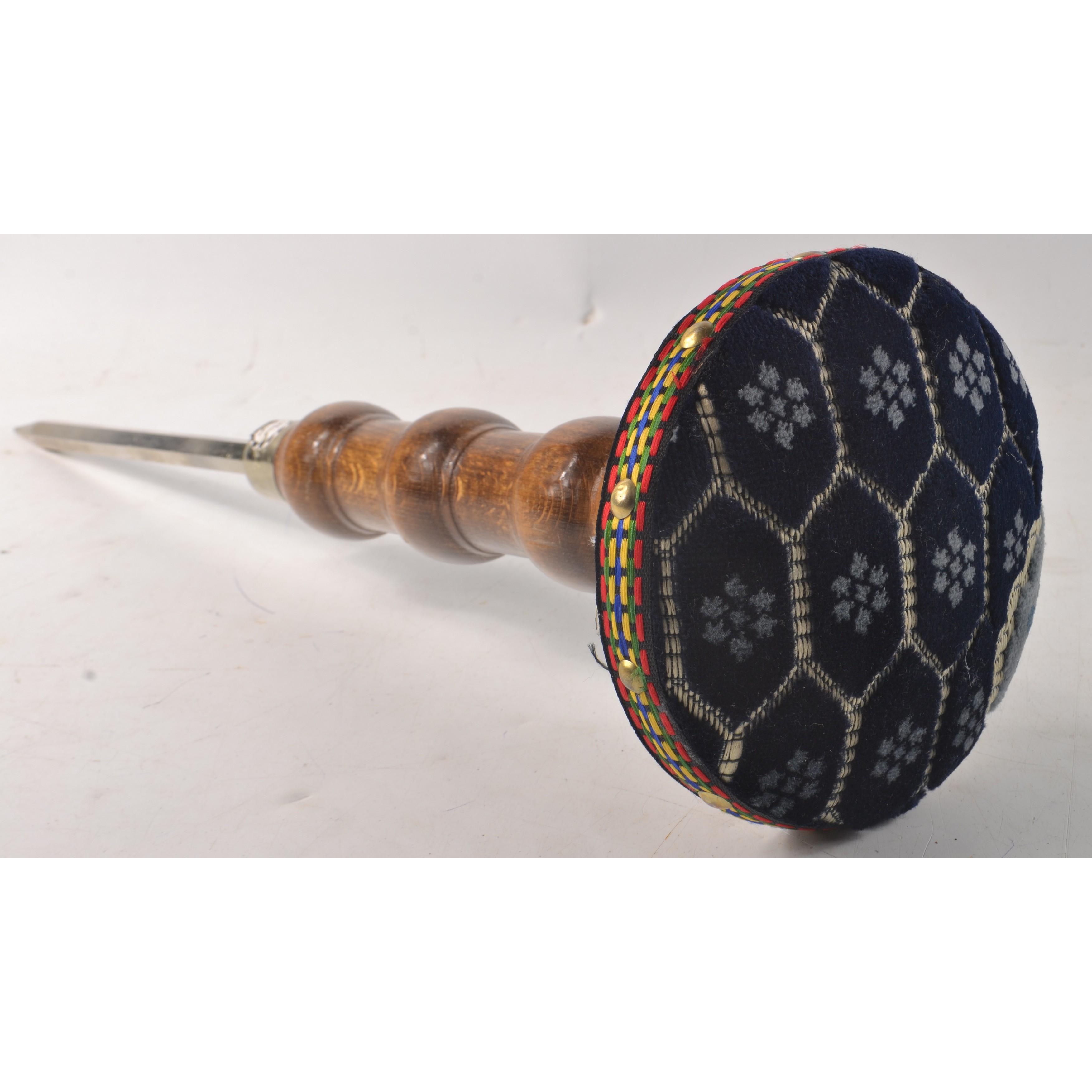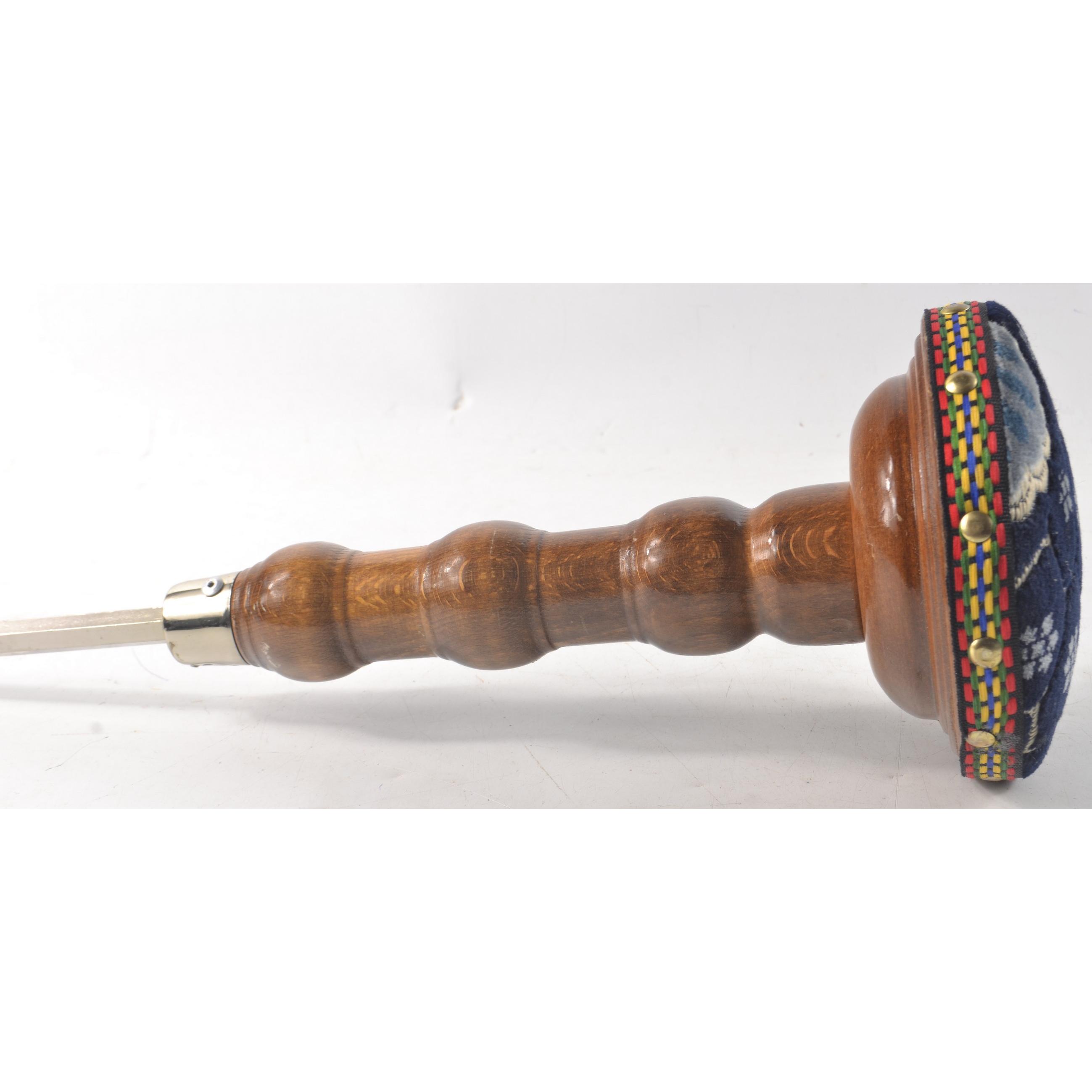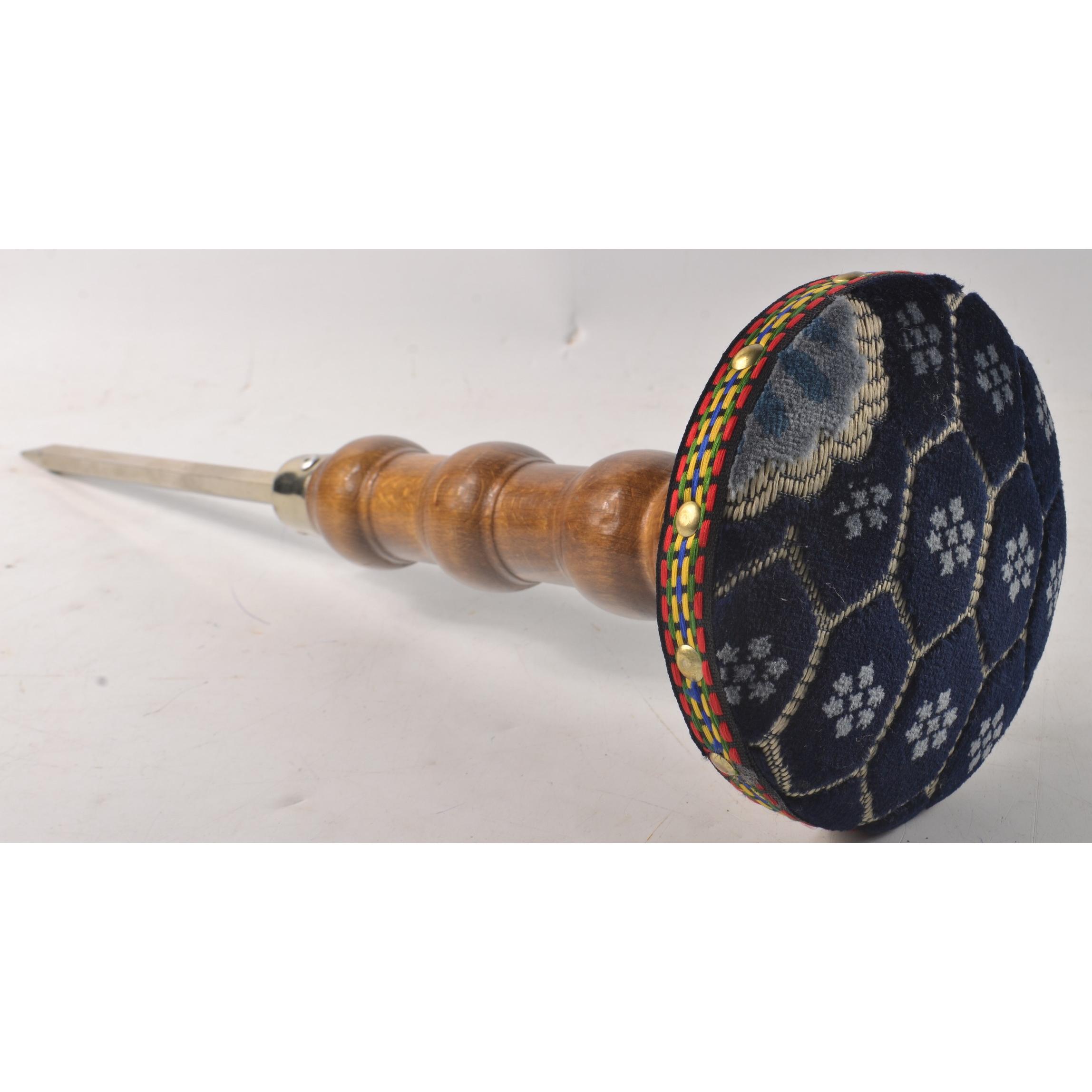 BIRD OF PREY stand with ground spike, dark blue velvet top and polished wooden shaftH: 49cm approx D: 14cm approx