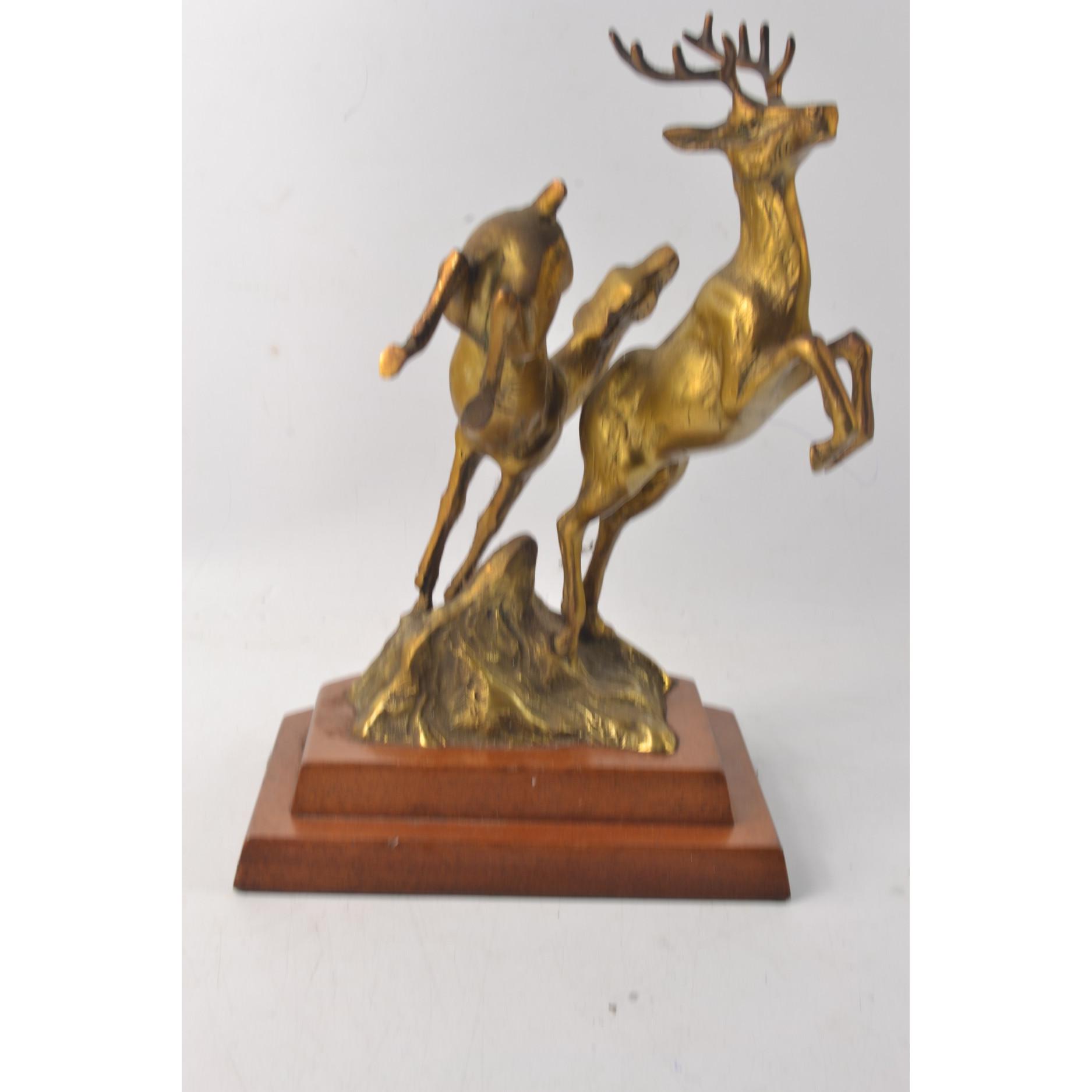 A brass ornament showing a pair of a young stag and doe 30cm height x 20cm approx length