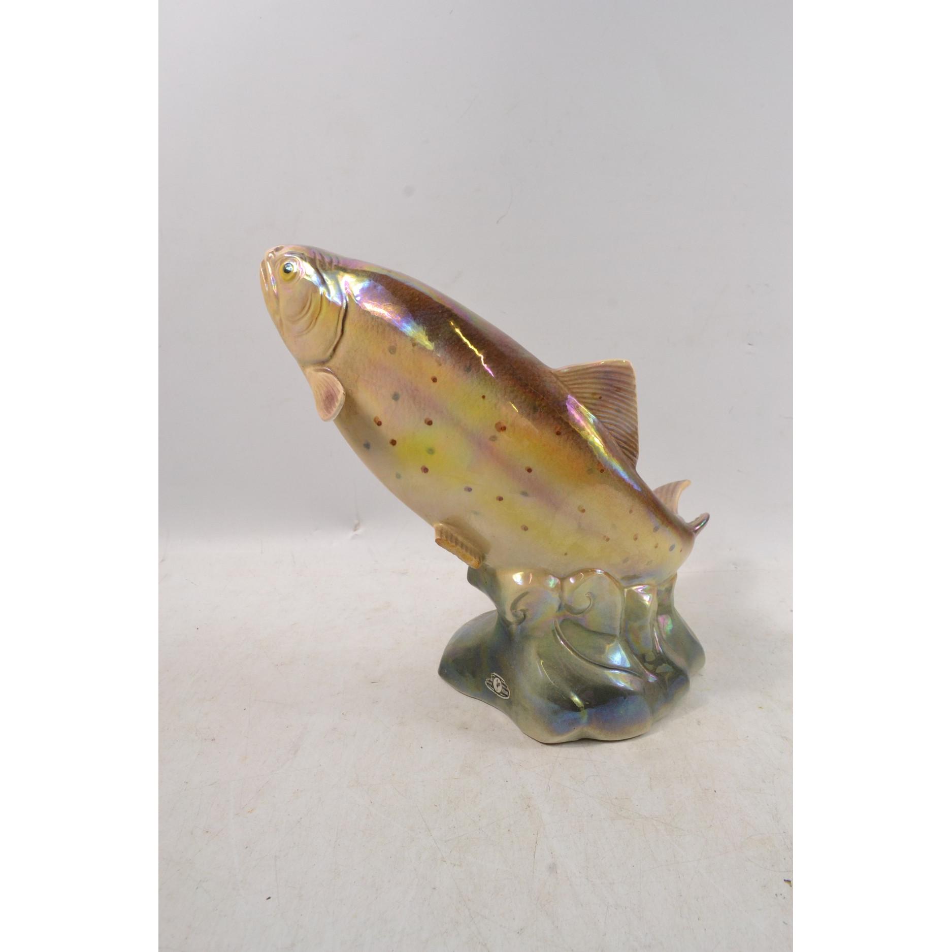 A LARGE JEMO HOLLAND glazed pottery large leaping salmon L: 30cm approx H: 24cm approx