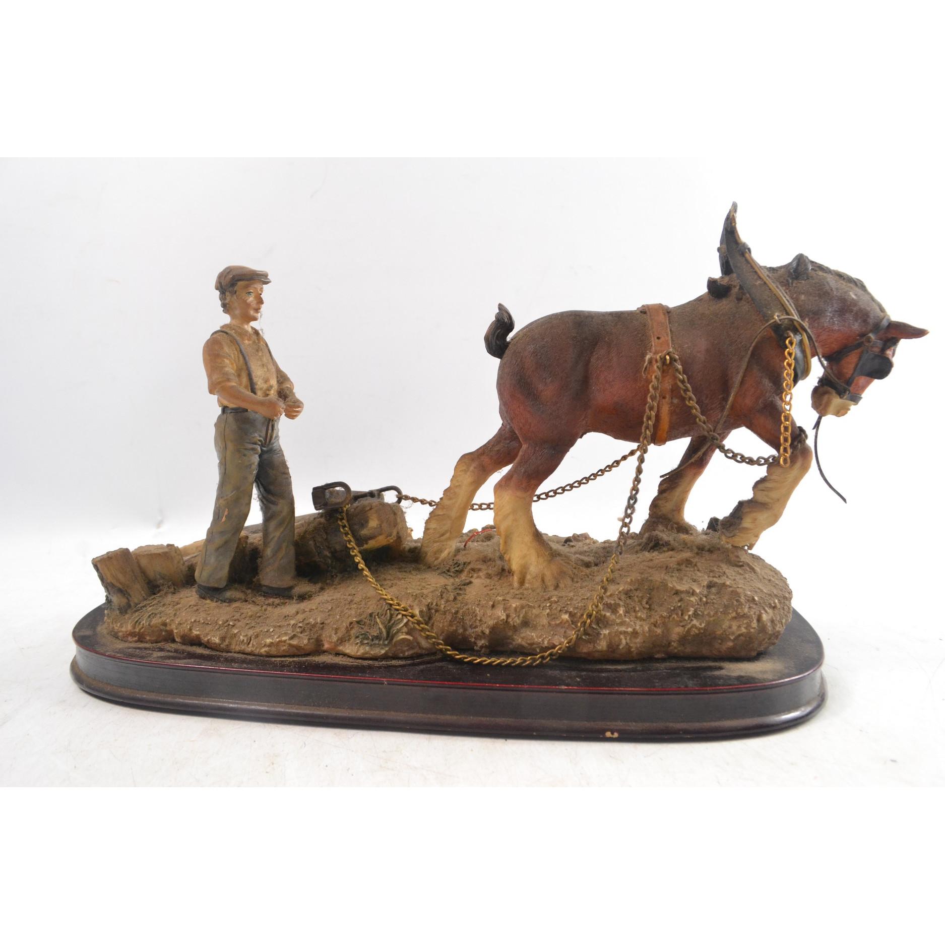 A Large JULIANO Collection work horse and farmer pulling logs(missing reigns etc)L: 36cm approx H: 19cm approx