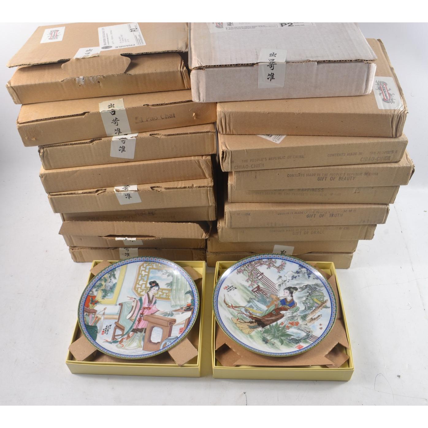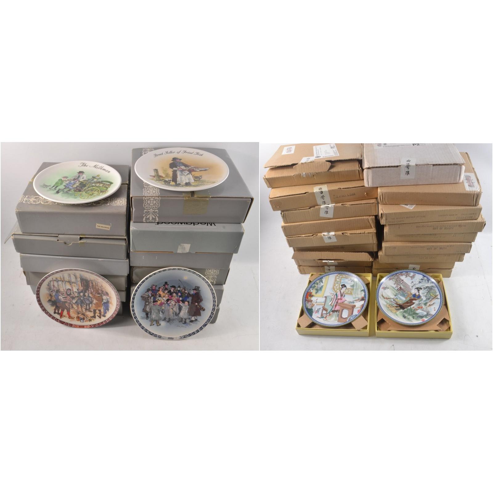 WEDGWOOD collector plates VICTORIAN XMAS SERIES x 4, and WEDGWOOD STREET SELLERS OF LONDON x8, and a collection of 12 1986 IMPERIAL JINGDEZHEN PORCELAIN collector plates celebrating traditional women in dress, THE GIFT OF PURITY 6 box sets of beautifully hand painted wild bird commemorative CHINESE PLATES with certificates