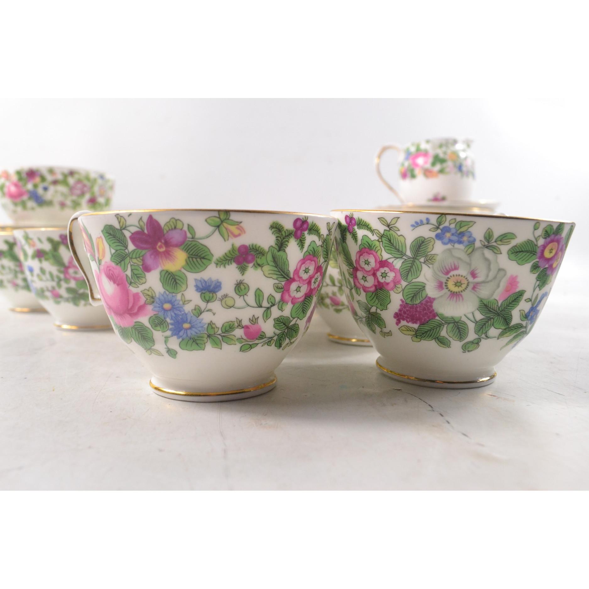 A GOOD QUALITY CROWN STAFFORDSHIRE 11 cup tea floral tea set