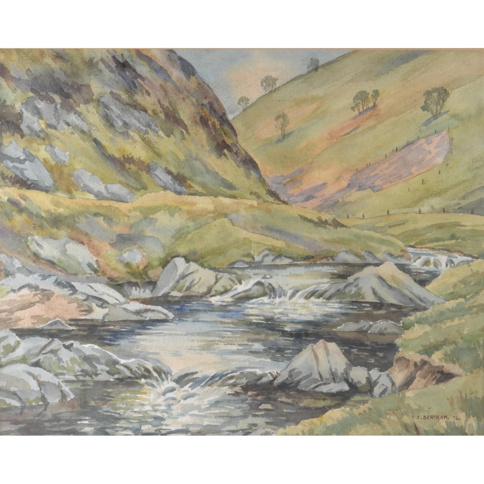 J BERTRAM local Border Artist original watercolour 'Rock and Pools' Glentress burn, Leithen Valley, framedL: 44cm approx H: 34cm approx