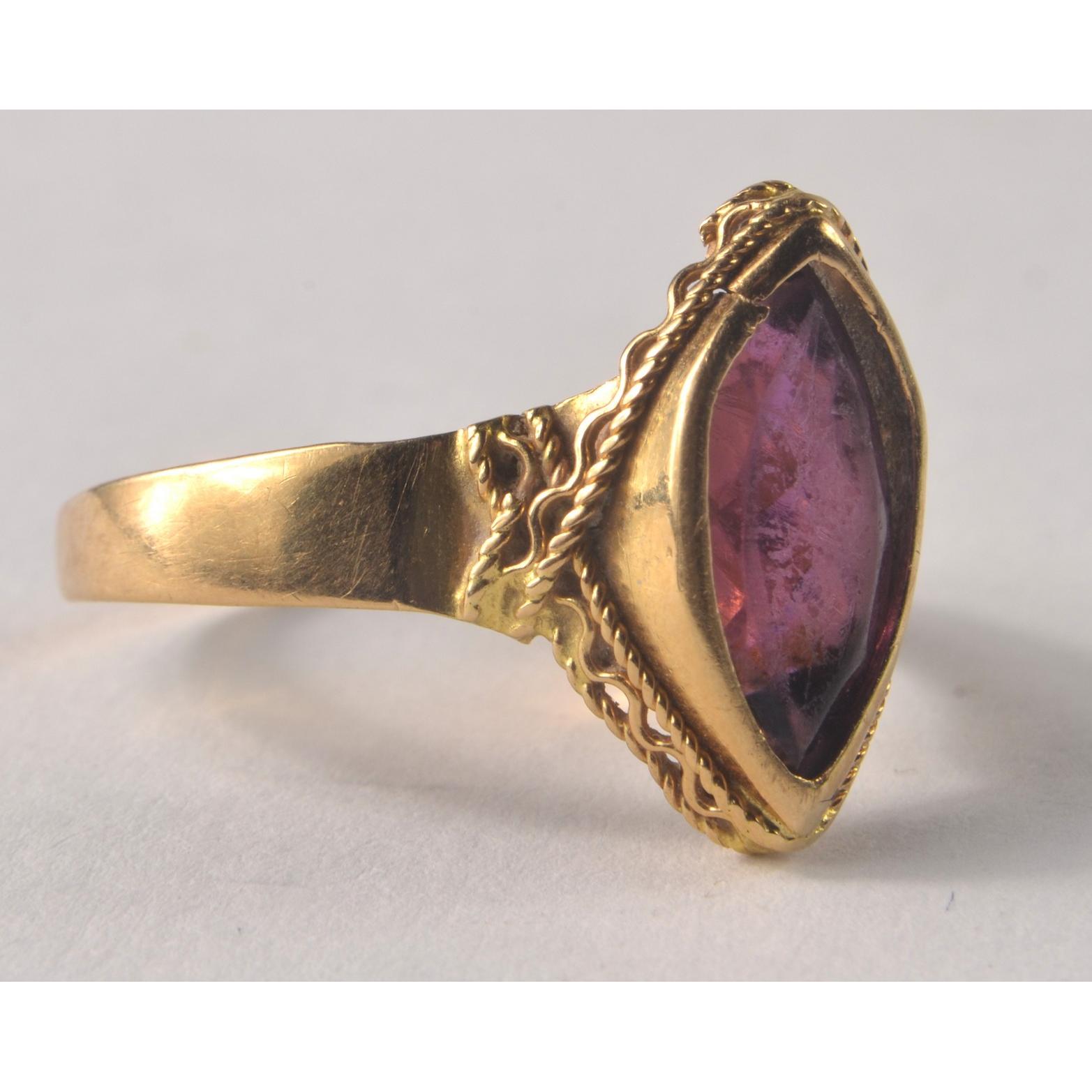 AMAZING AMETHYST! Vintage 750 stamped ladies dress ring with a large amethyst inset 3g gross size RGross weight approx 3g