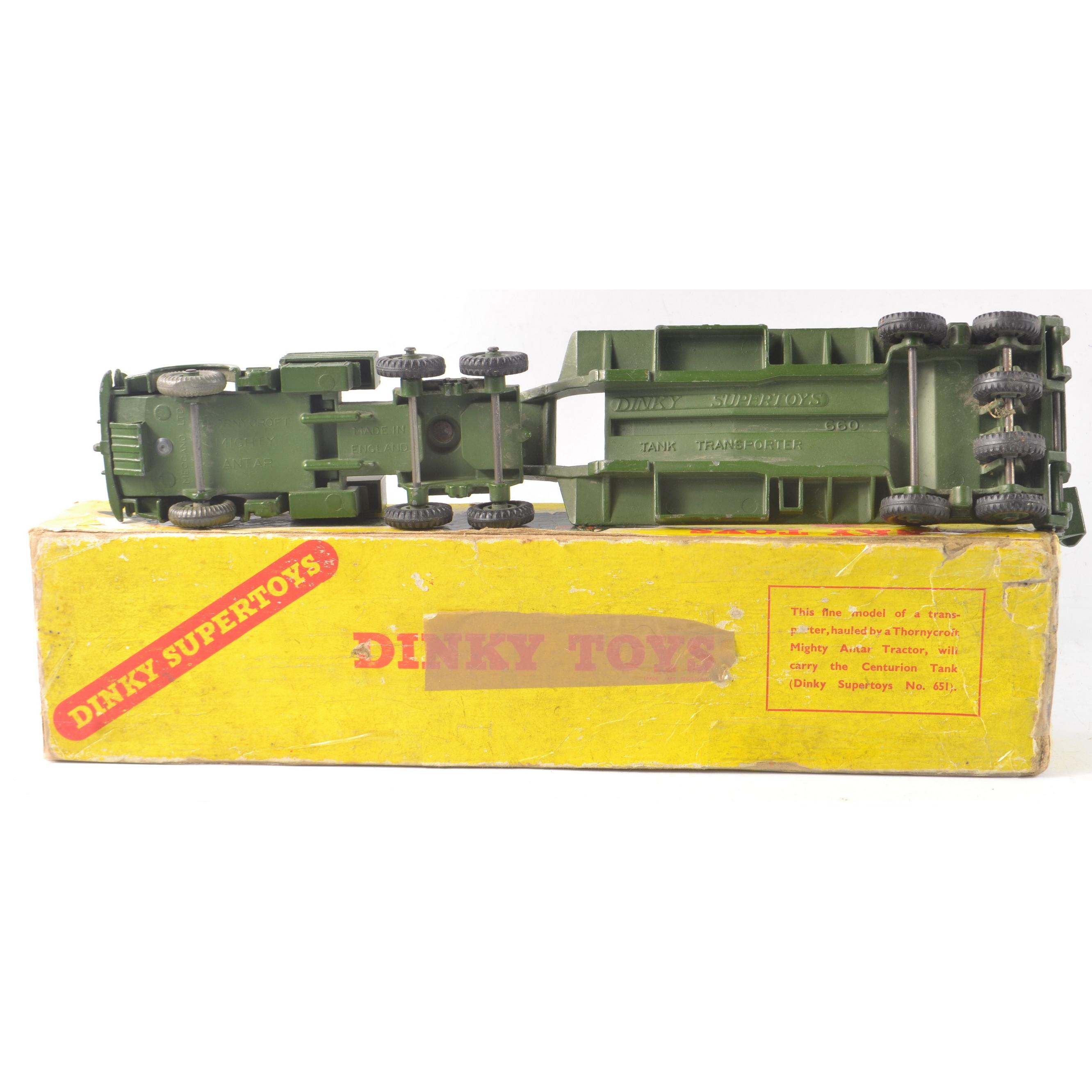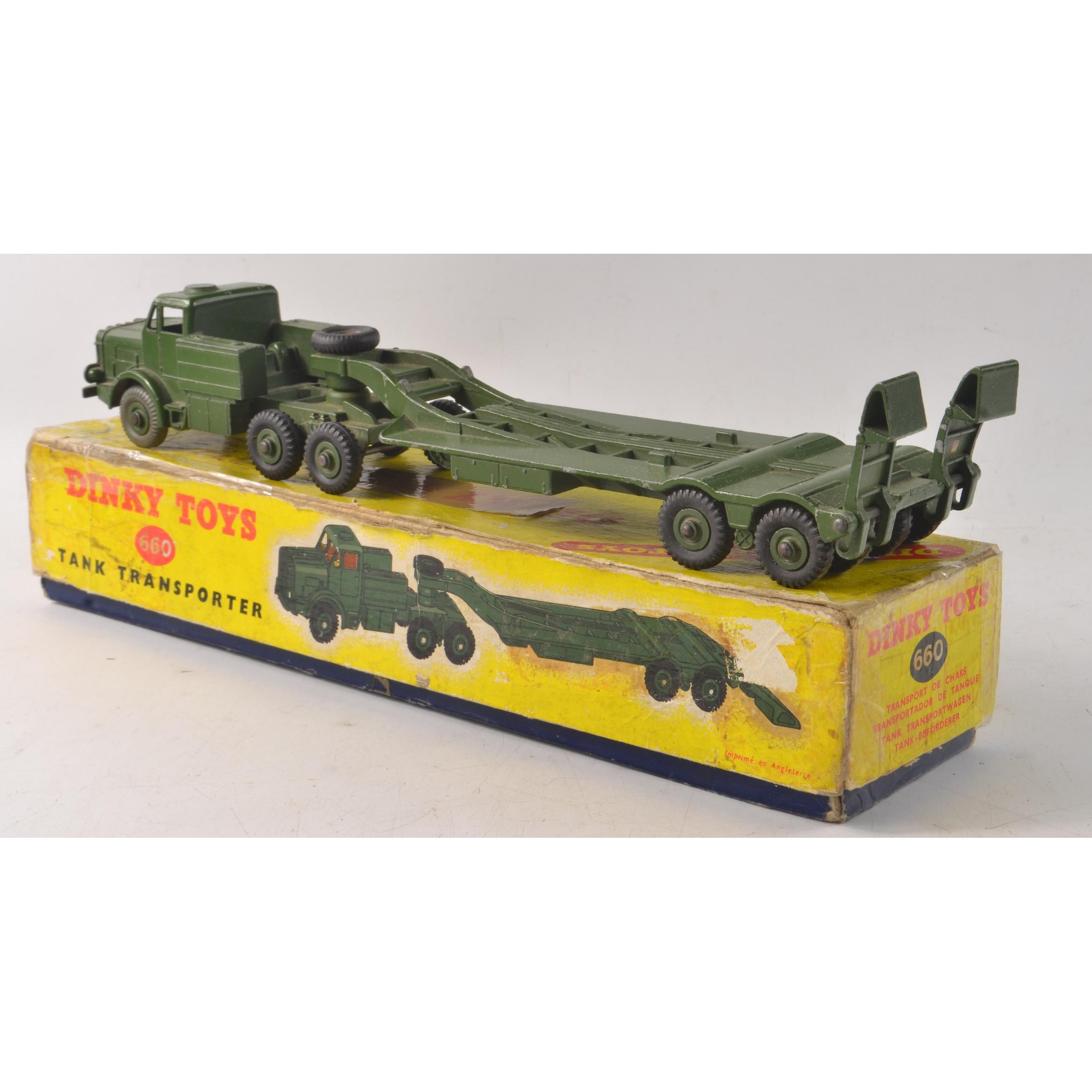 DINKY TOYS ORIGINAL TANK TRANSPORTER No 660, the box is intact but has been sellotape repaired over the years, the tank transporter only has a few minor paint chips but otherwise very well looked after and cherished by the vendor as a child from Edinburgh.