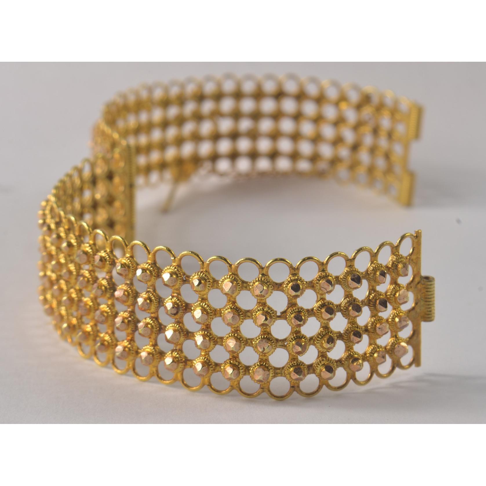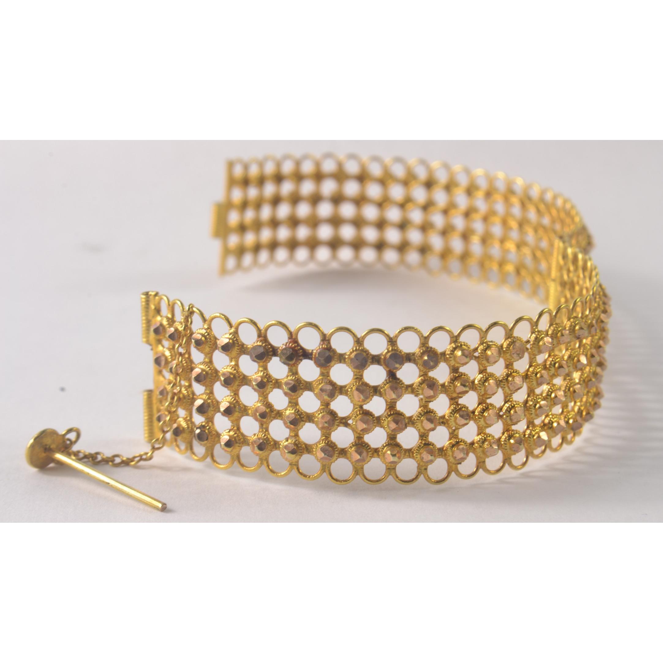VENEZUELAN HAND CRAFTED 12ct Tested Yellow Gold open work bracelet [Diam approx 6.25 cm ]Gross weight approx 25.60grms