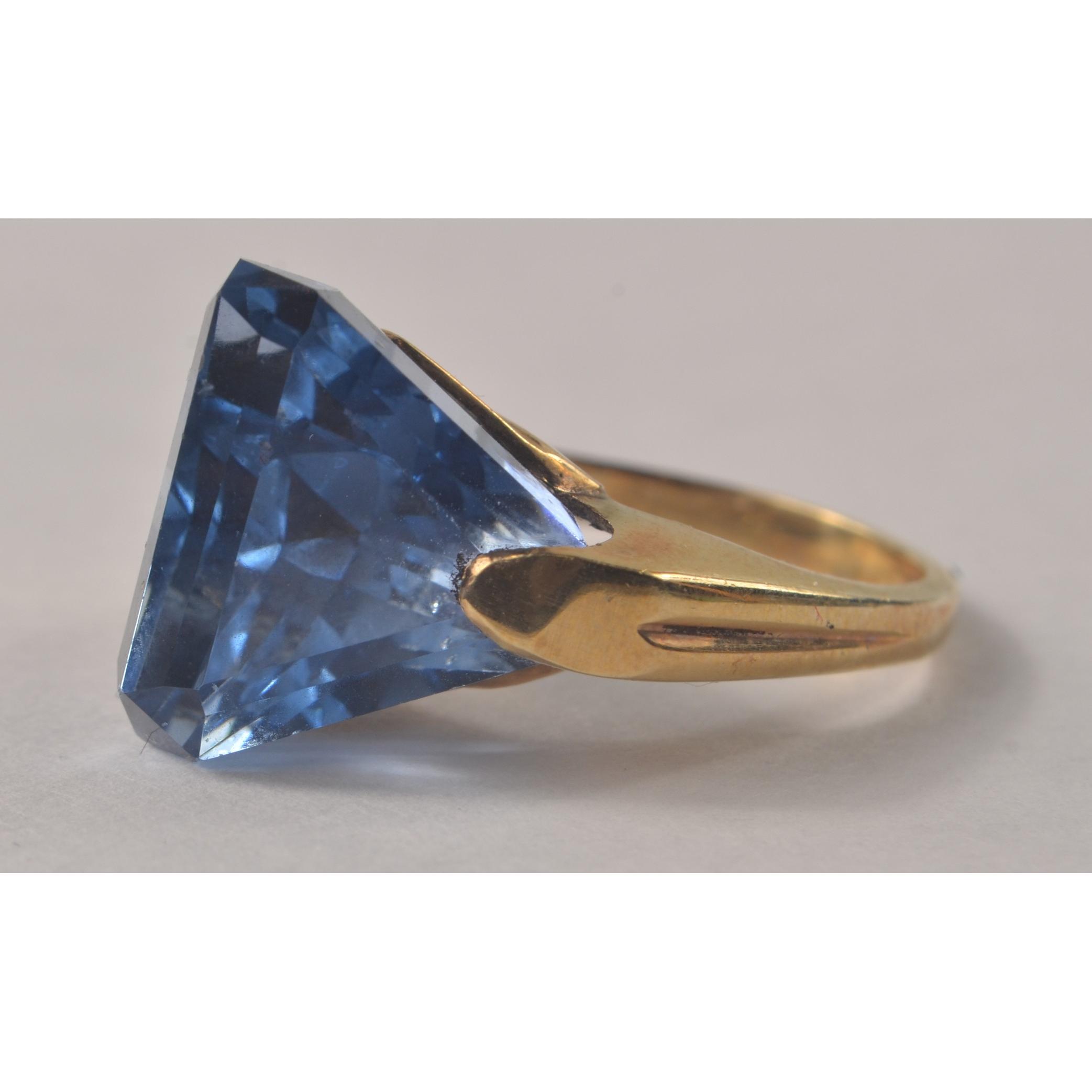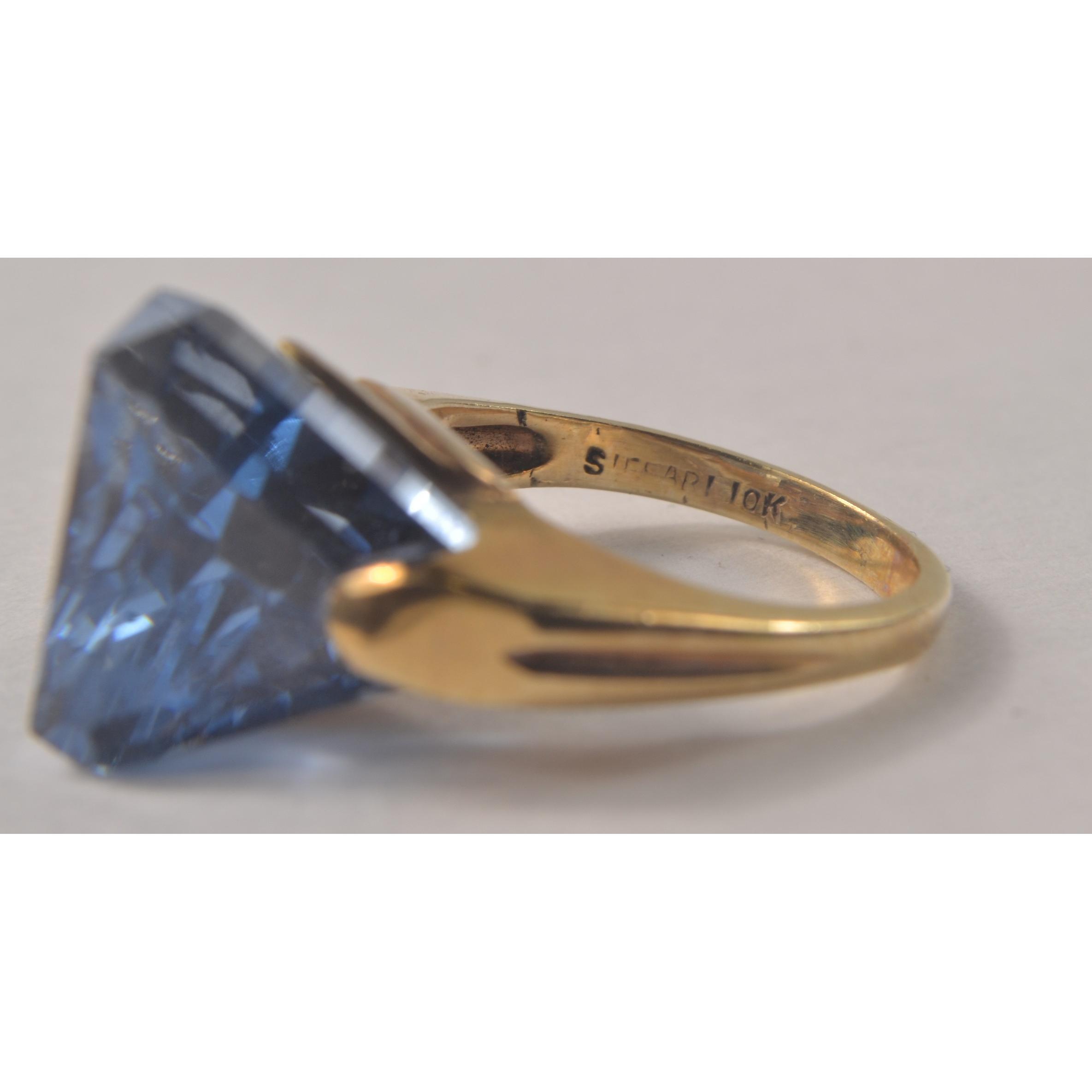 VINTAGE 10k Stamped yellow gold ring set with pale blue stone[size I]Gross weight approx 5.9grm