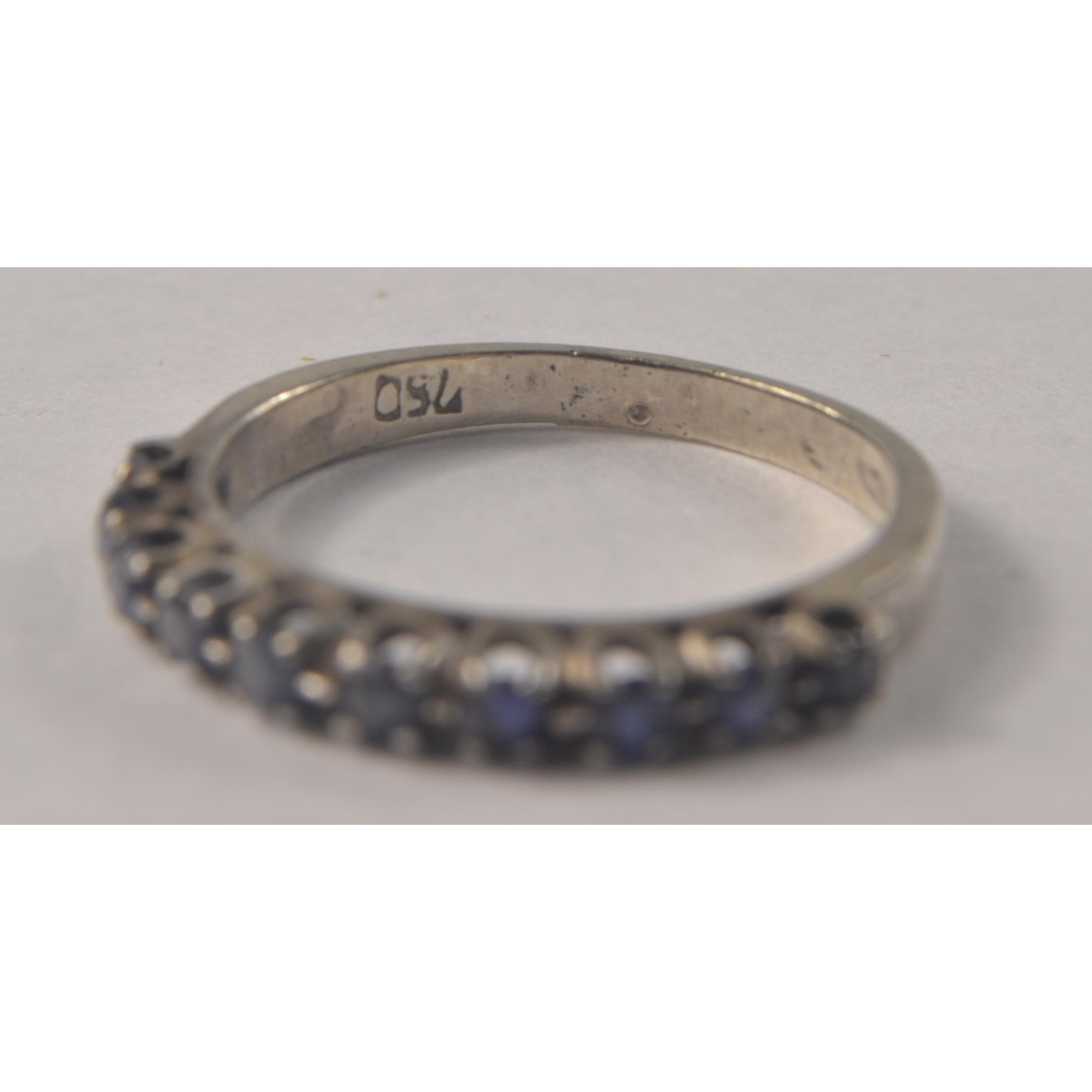 VINTAGE 750 Stamped White Gold Half Eternity ring [size I] set with 'SIZZLING' sapphires - a beautiful ring!Gross weight approx 1.9grms