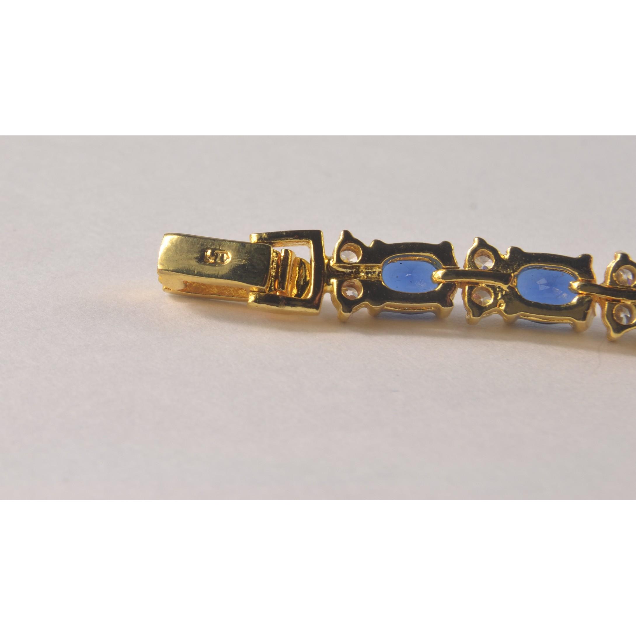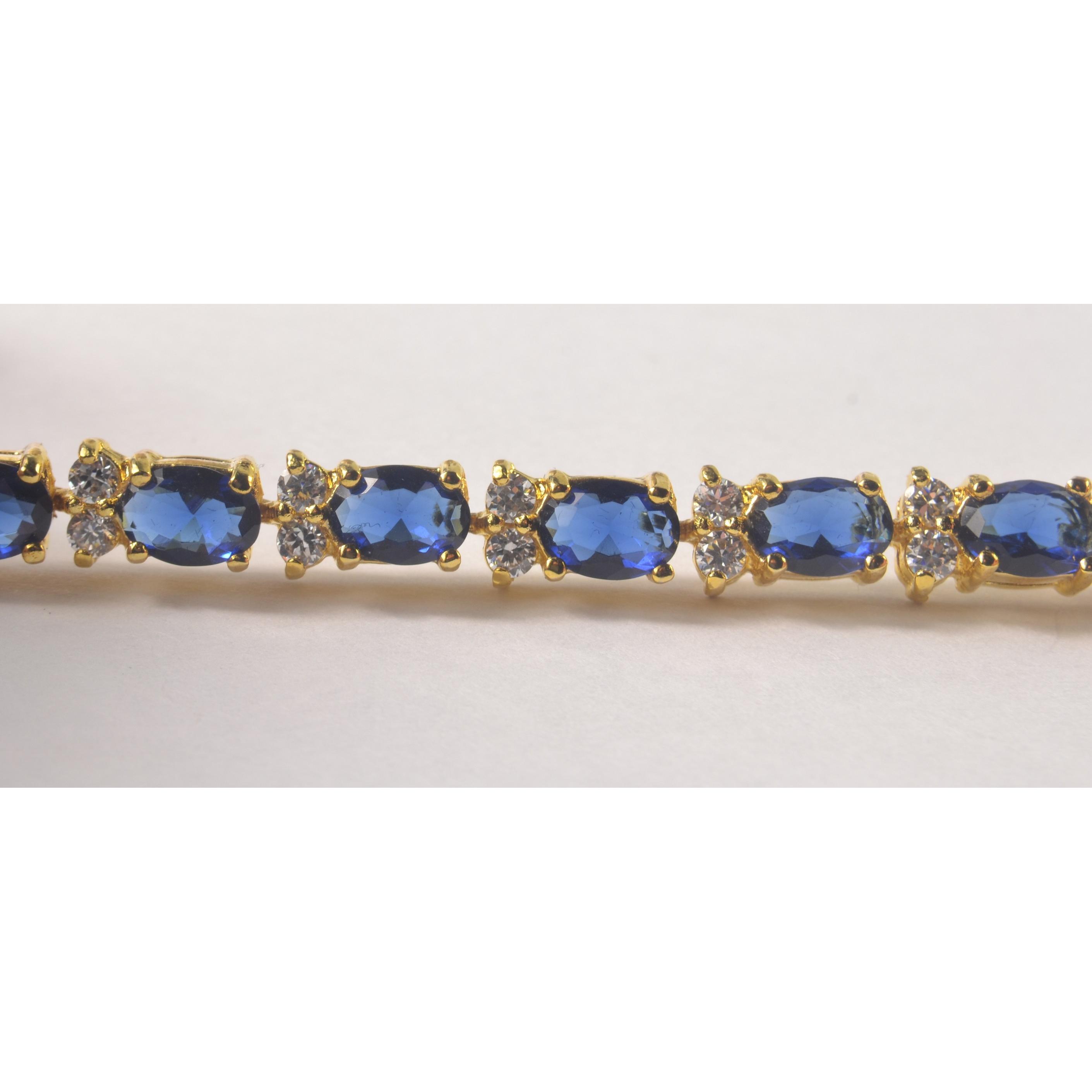 BLING! Yellow metal necklace set with blue stones. {L 42cm }