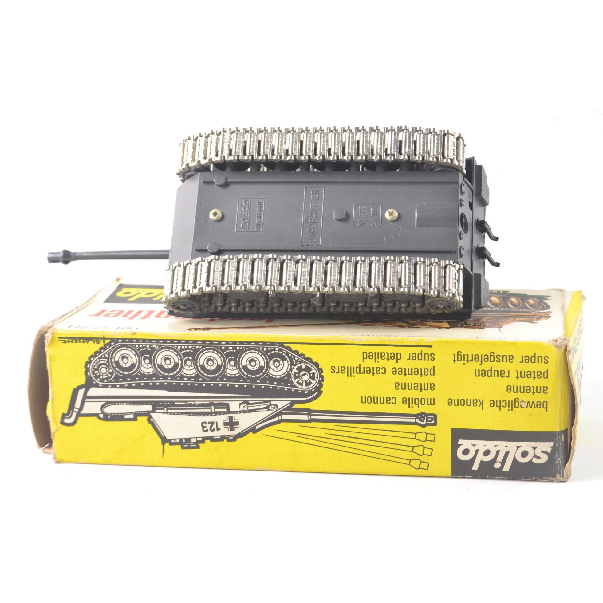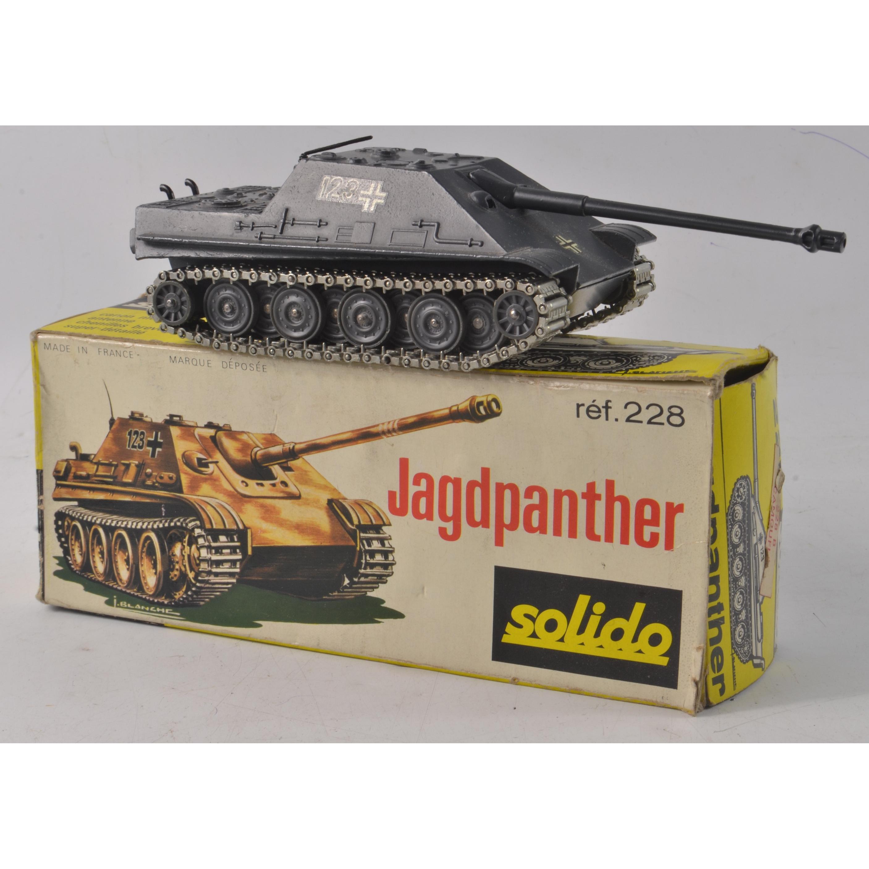 A boxed Original SOLIDO GERMAN PANTHER Tank No 228 in good condition, with the box missing only one side flap at one end.
