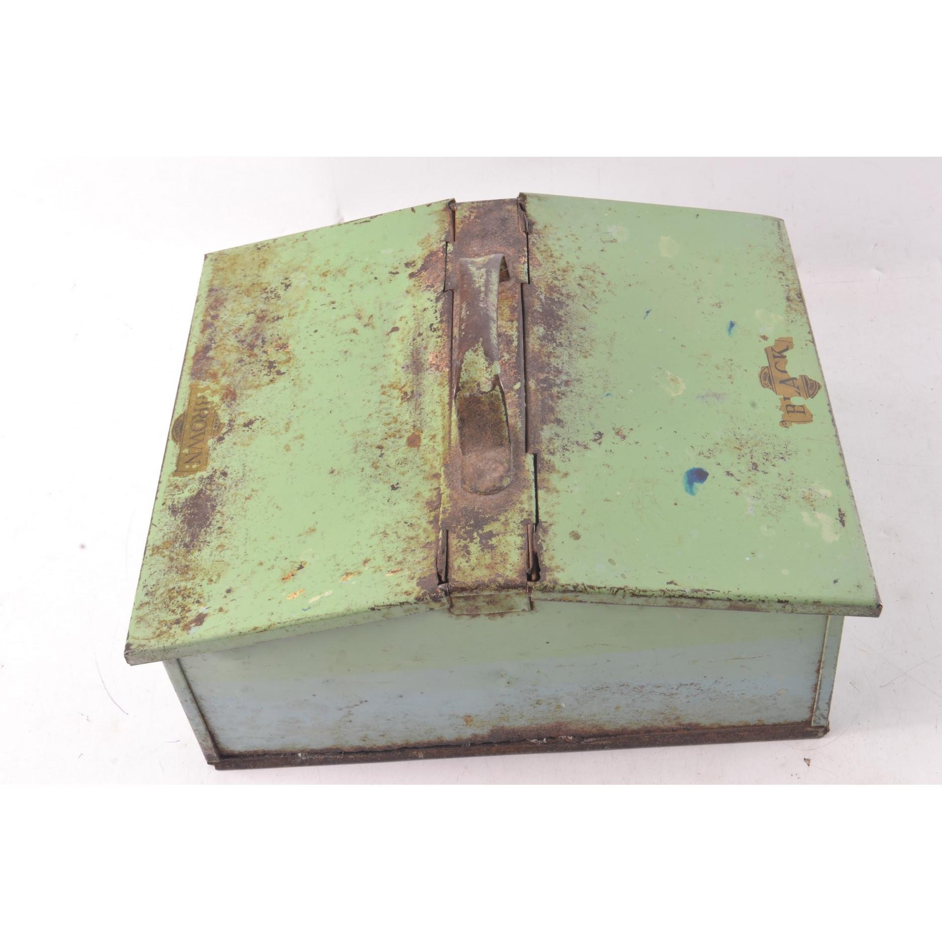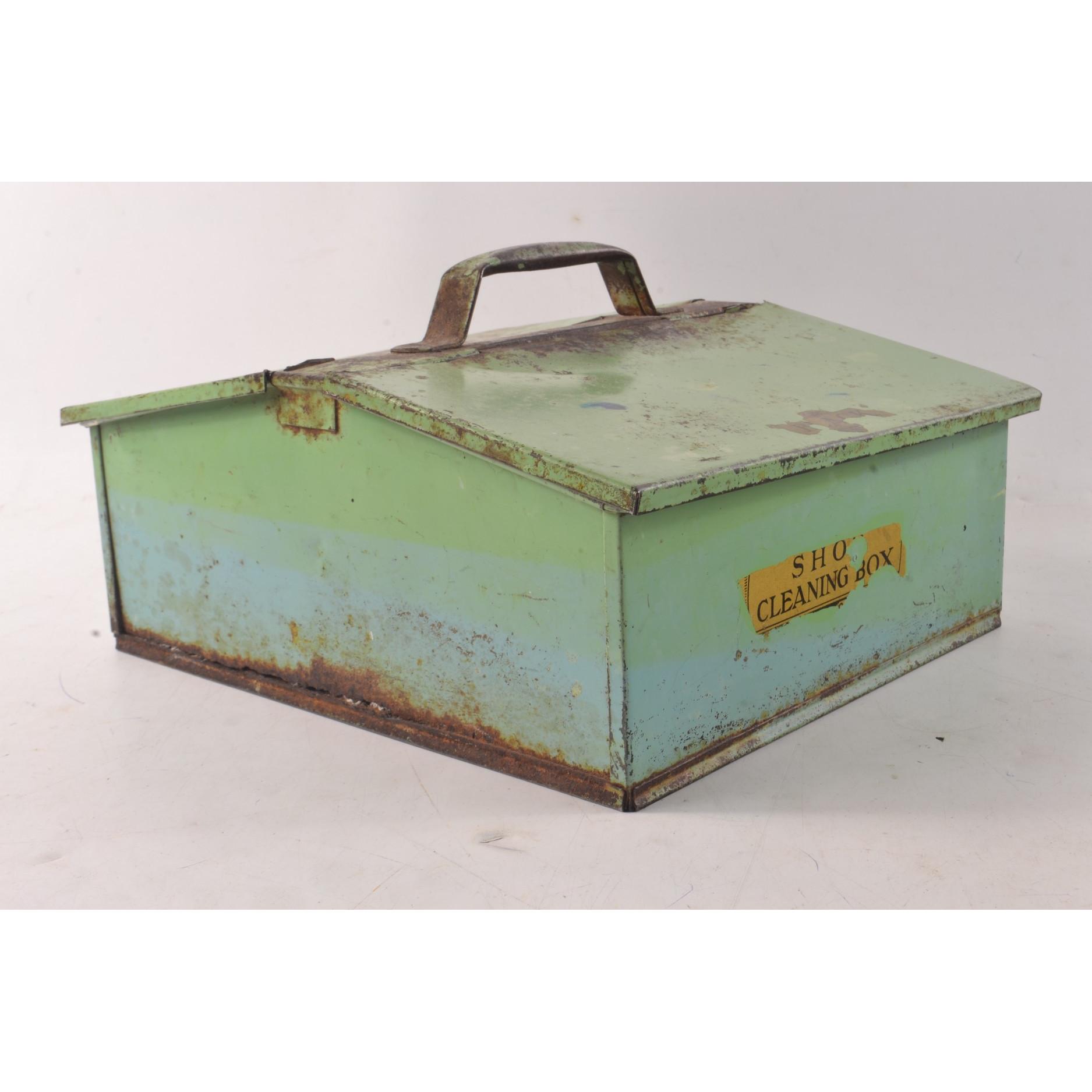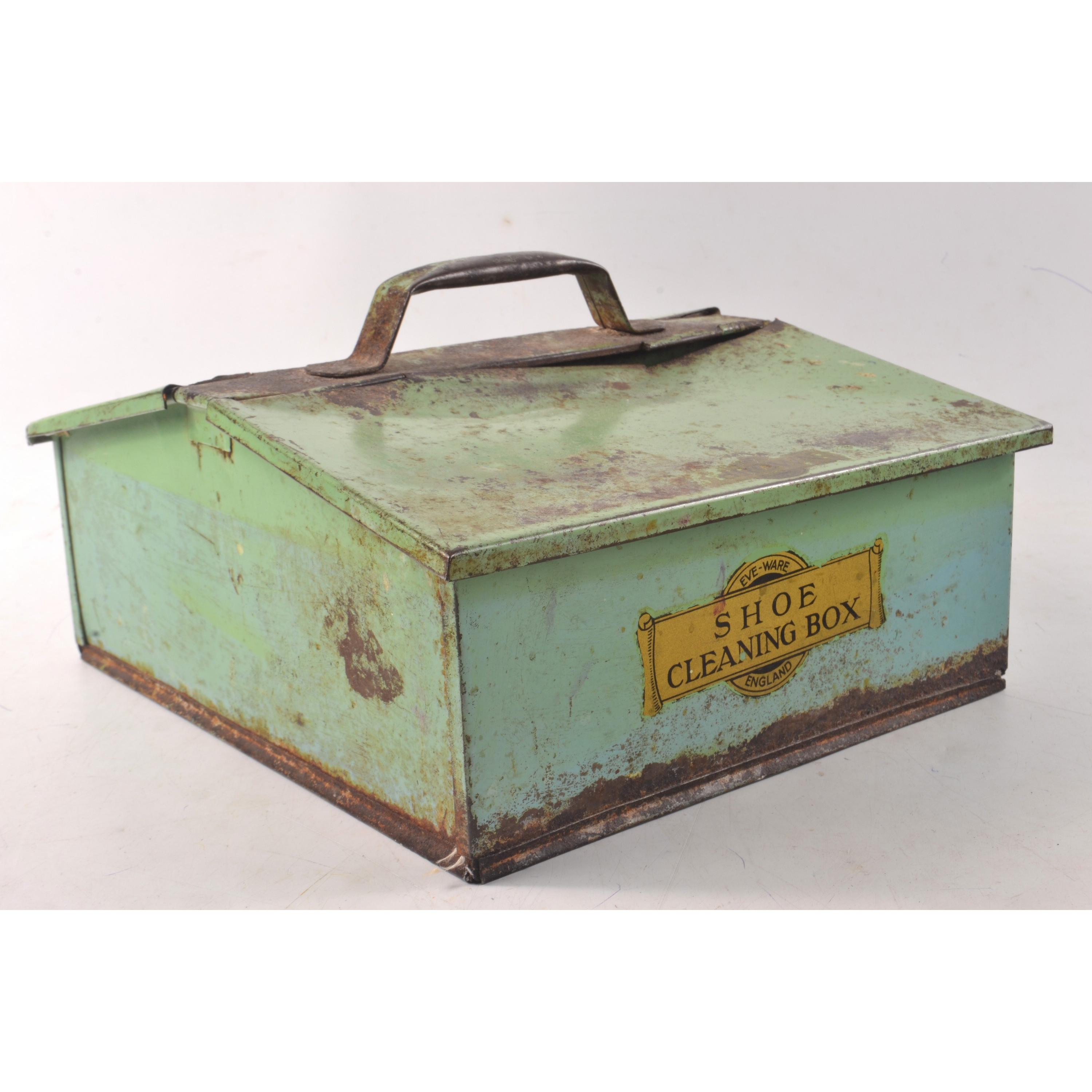 A VINTAGE shoe shine box tin with opening flaps either end - ICONIC!L: 12” approx W: 10” approx