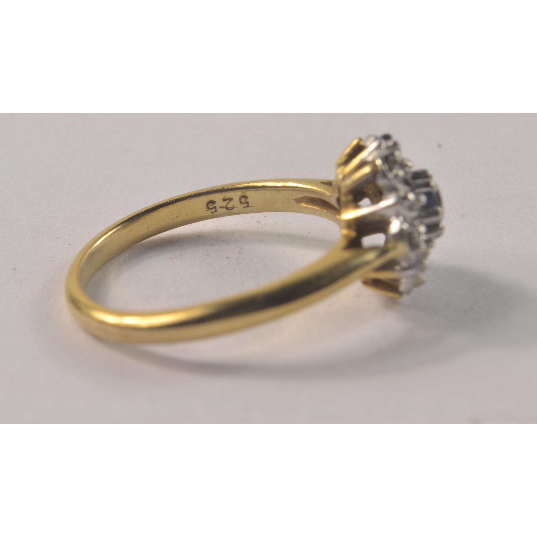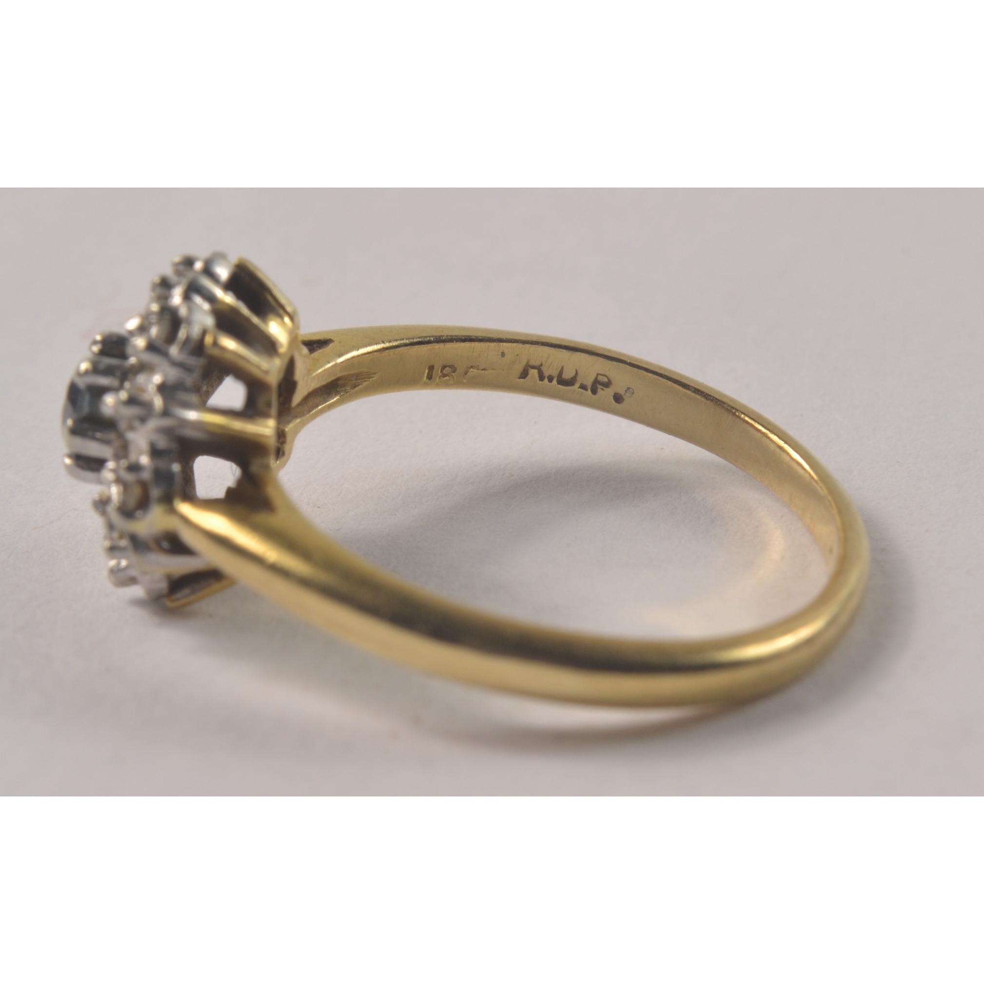 18ct Stamped Yellow Gold Ring set with Sapphire and white stones in floral design [size L/M ]Gross weight approx 3.20grms