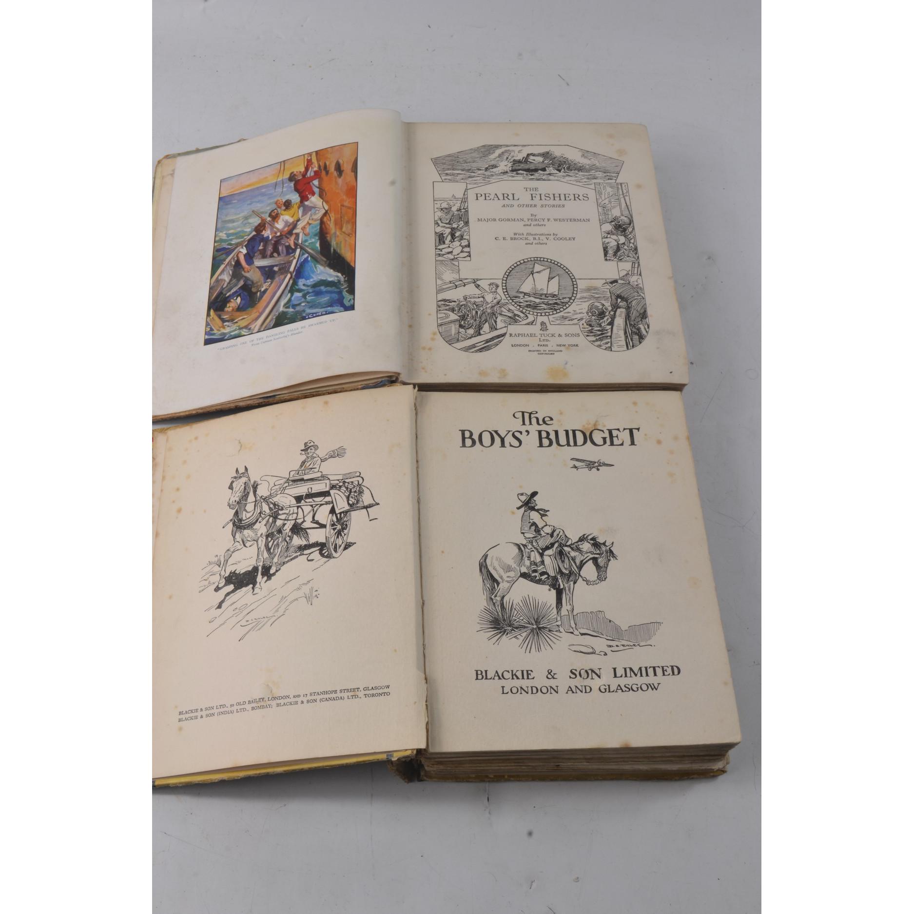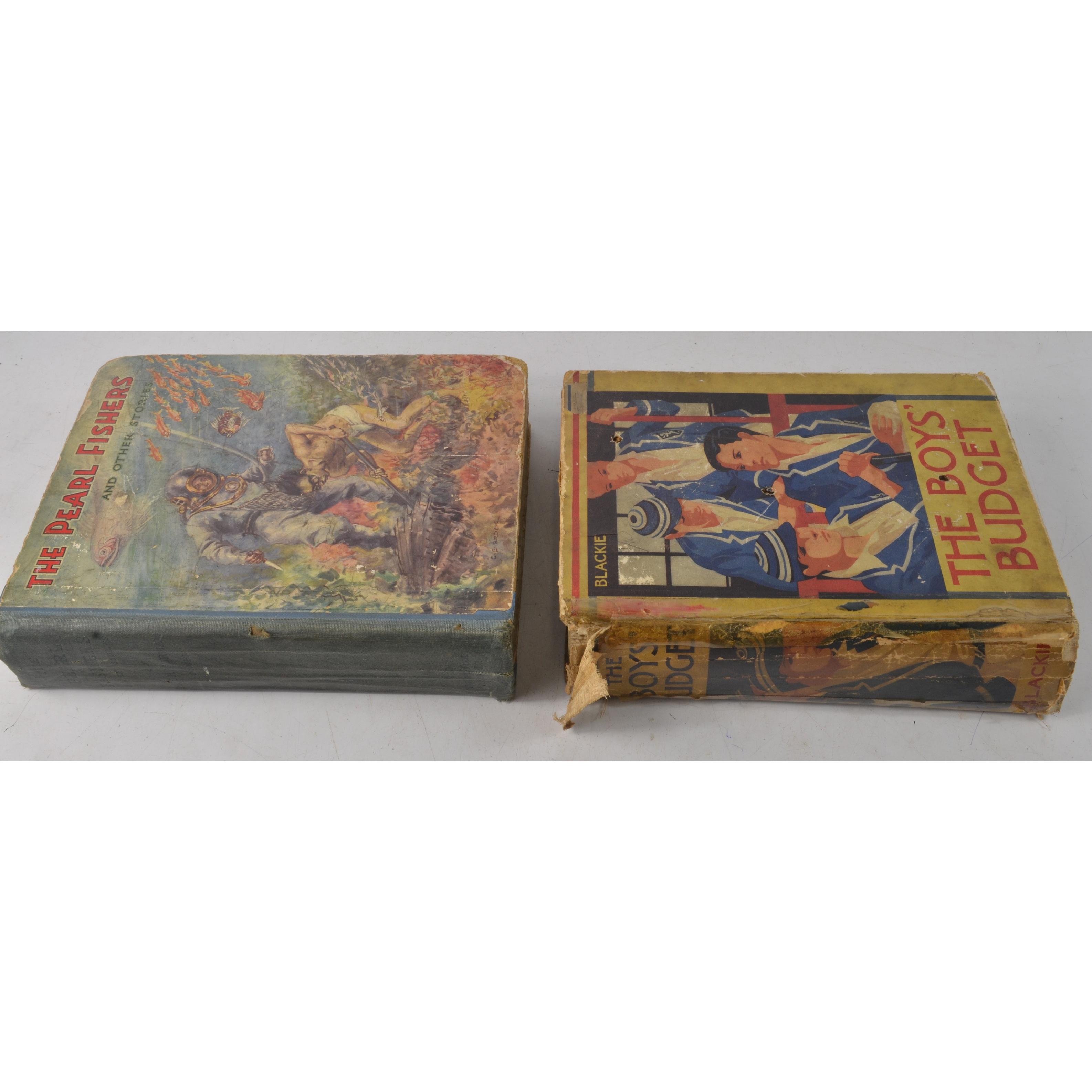 A pair of VINTAGE BOYS BOOKS to include THE PEARL FISHERS AND OTHER STORIES and THE BOYS BUDGET(repaired spine with sellotape)Approx 2 pieces