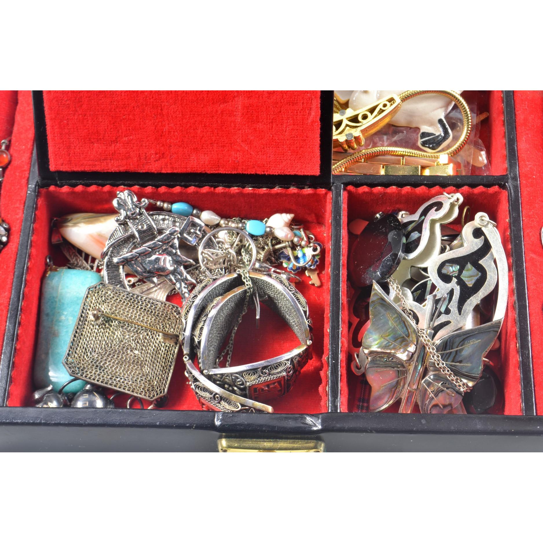 Black Foyero box containing quantity of costume jewellery