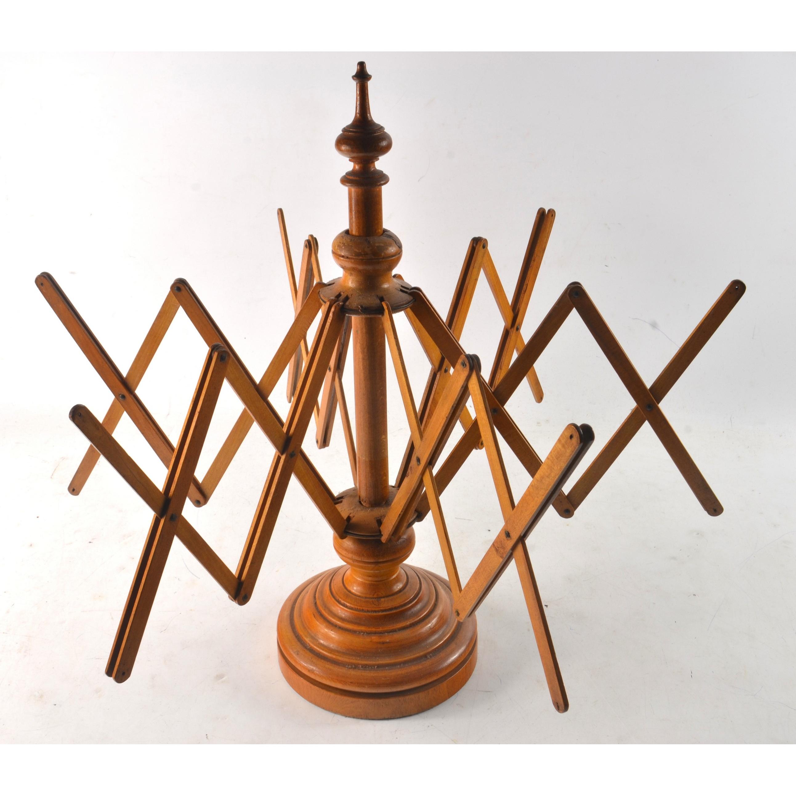 ANTIQUE (cEdwardian) Wooden concertina action Wool Spinner [H 44cm and approx 70cm when extended ] H: 44cm approx