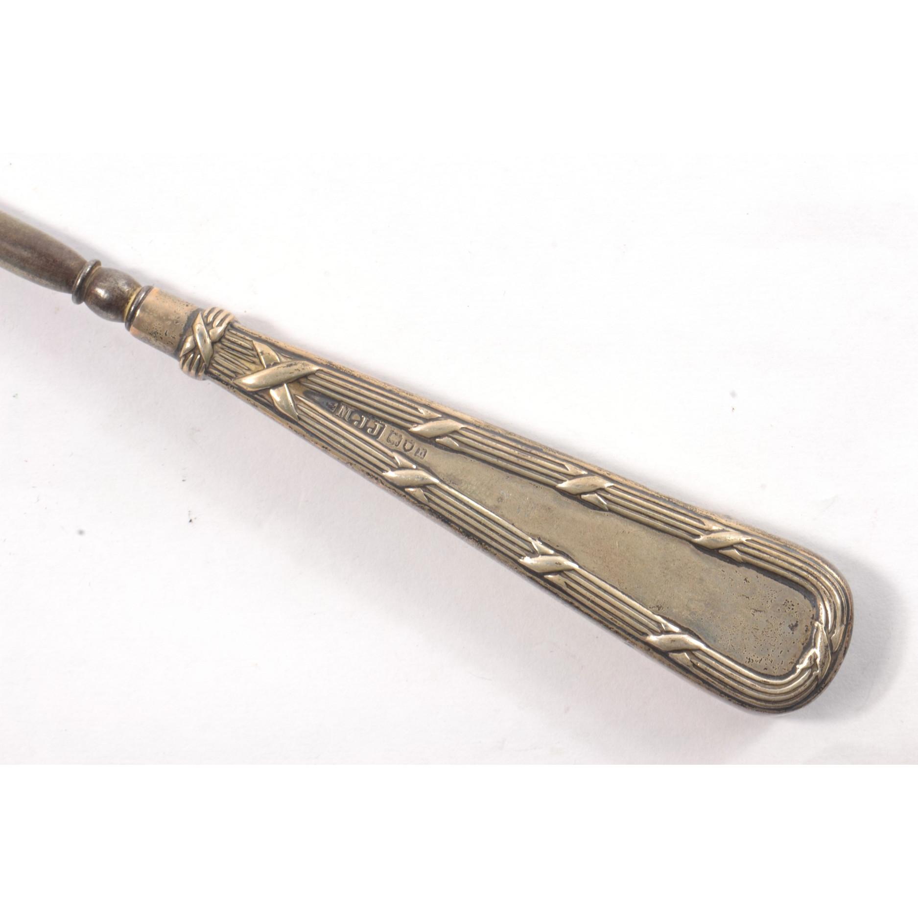 A Vintage SILVER handled button hook Hallmarked London, with a nicely decorated handle