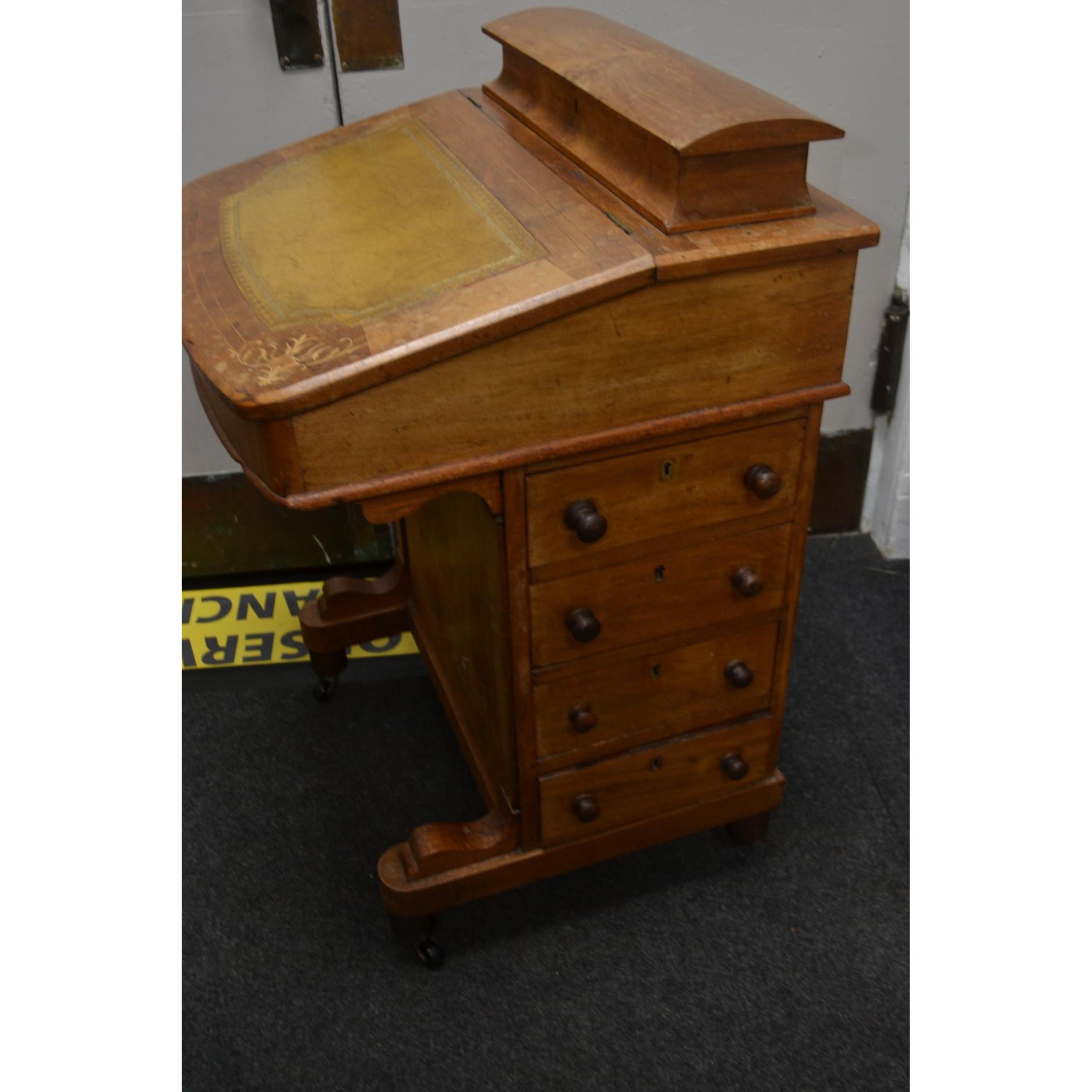 VICTORIAN DAVENPORT with light brown leather writing pad - in lovely condition generally, some light fading from the sun, but does not detract from the overall item!
