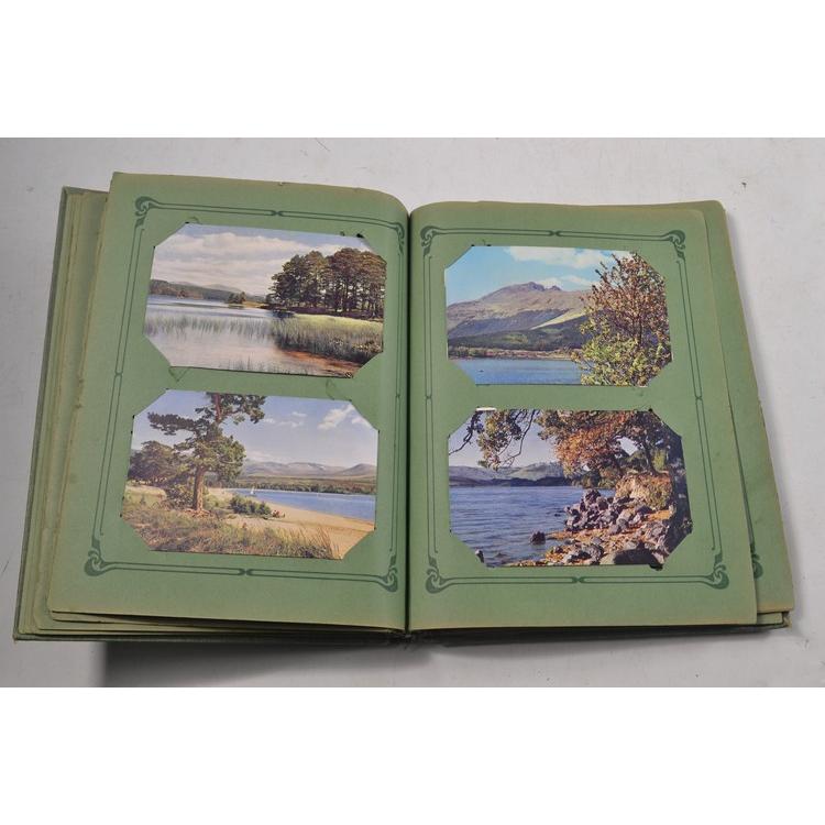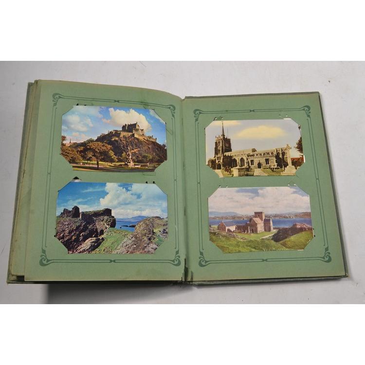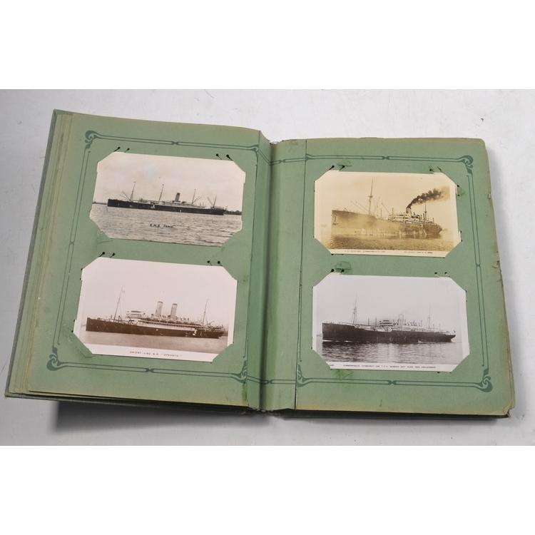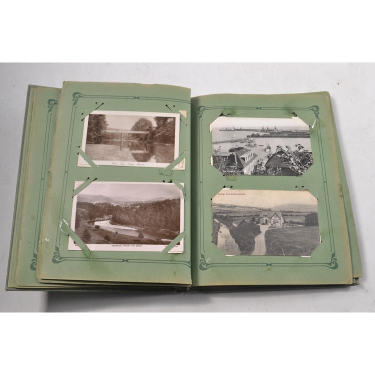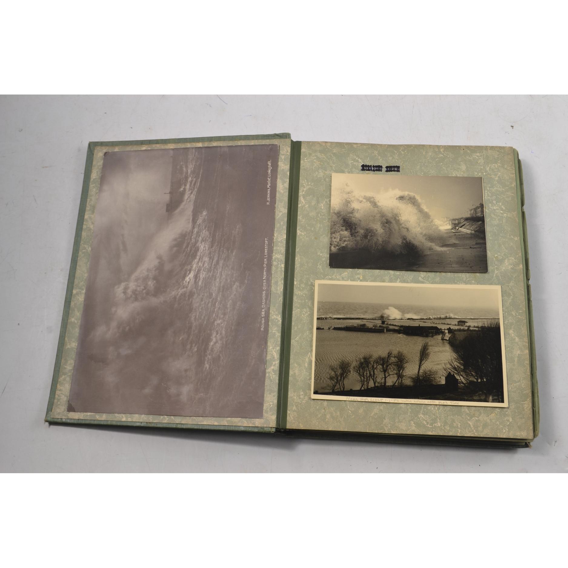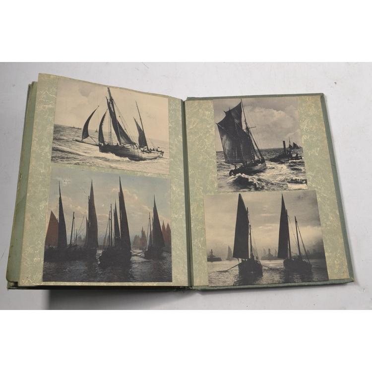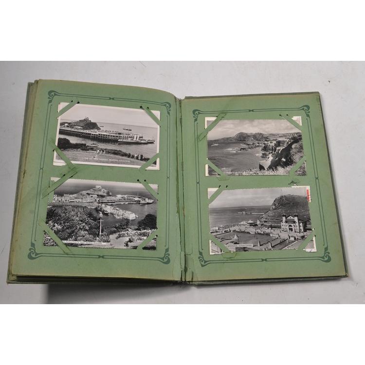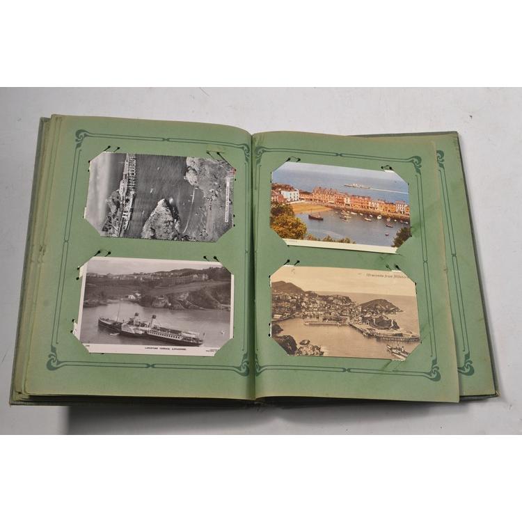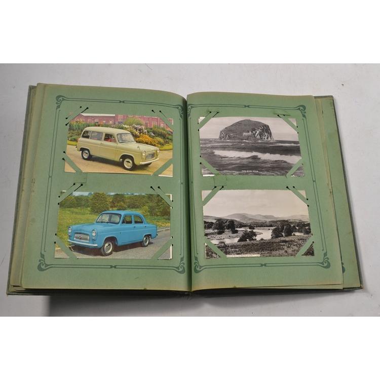 A medium sized vintage photographic/Old Photographs album subjects British Isles, to include also War Postcards of World War 2 German Fleet proceeding in line to surrender, Peebles picture from the West, British motor cars, Bass Rock, Ilfracombe, early views of Lowestoft yacht Basin etc etc