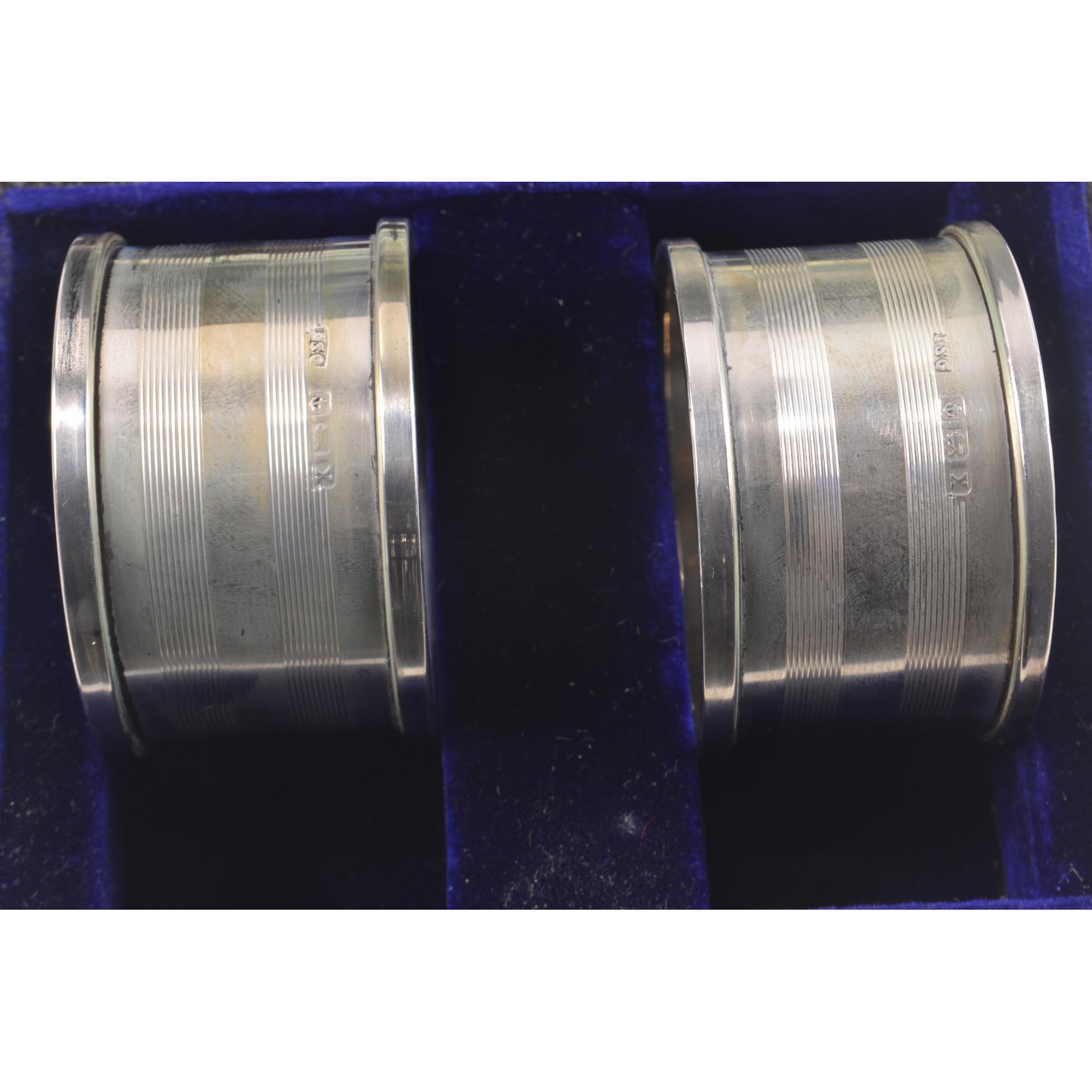 Pair of silver Hallmark Birmingham napkin rings within their original jeweller's chest.