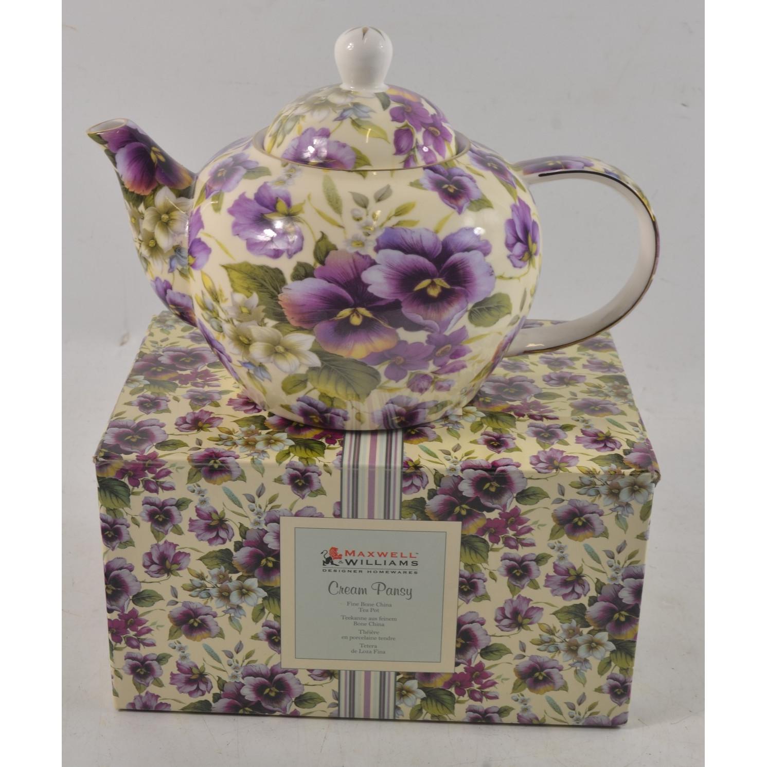 MAXWELL WILLIAMS cream pansy teapot. As new, boxed.