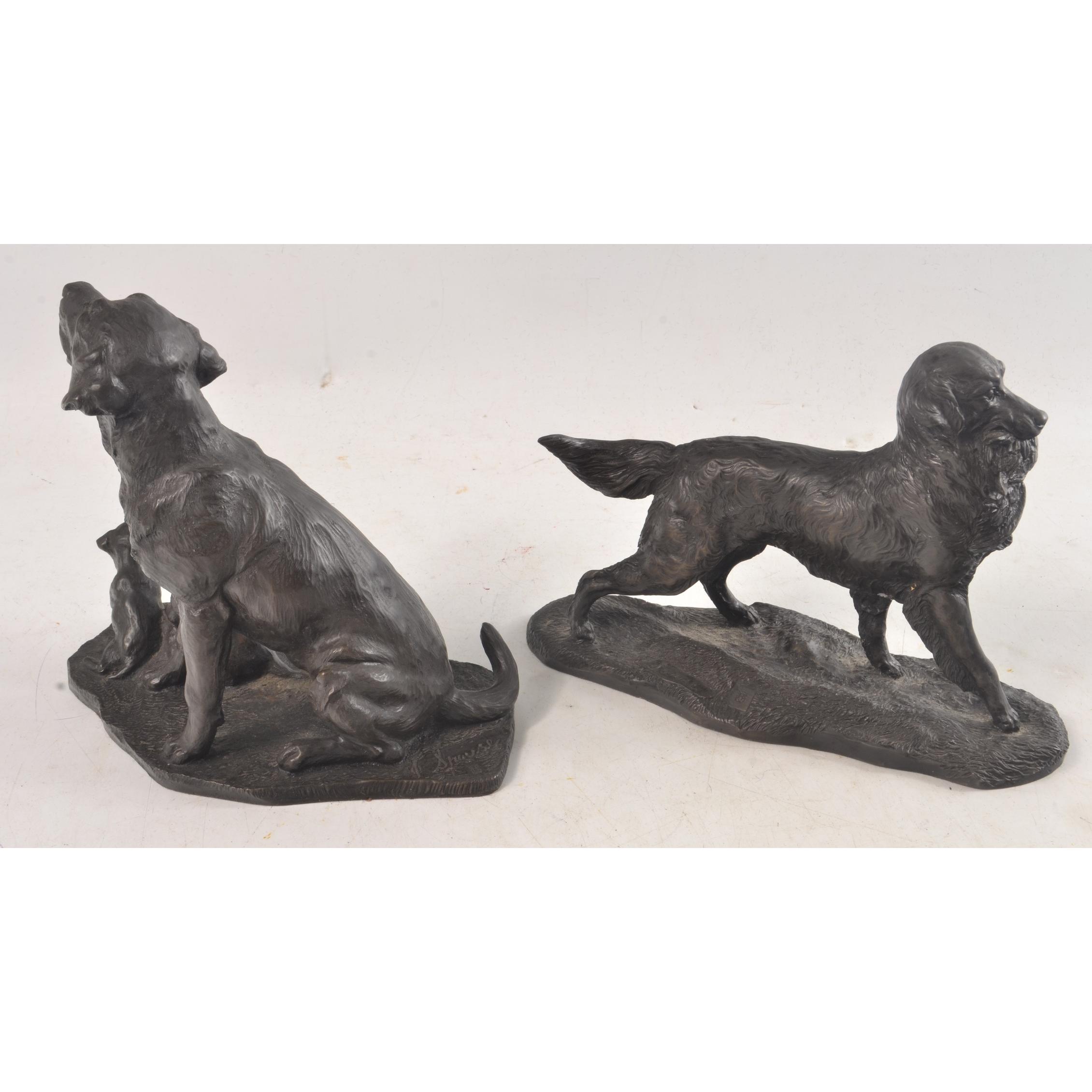 Two HEREDITERIES small dog statues to include a Retreiver 14cm x 10cm height and also a Labrador with puppies 16cm height x 17cm wide approx