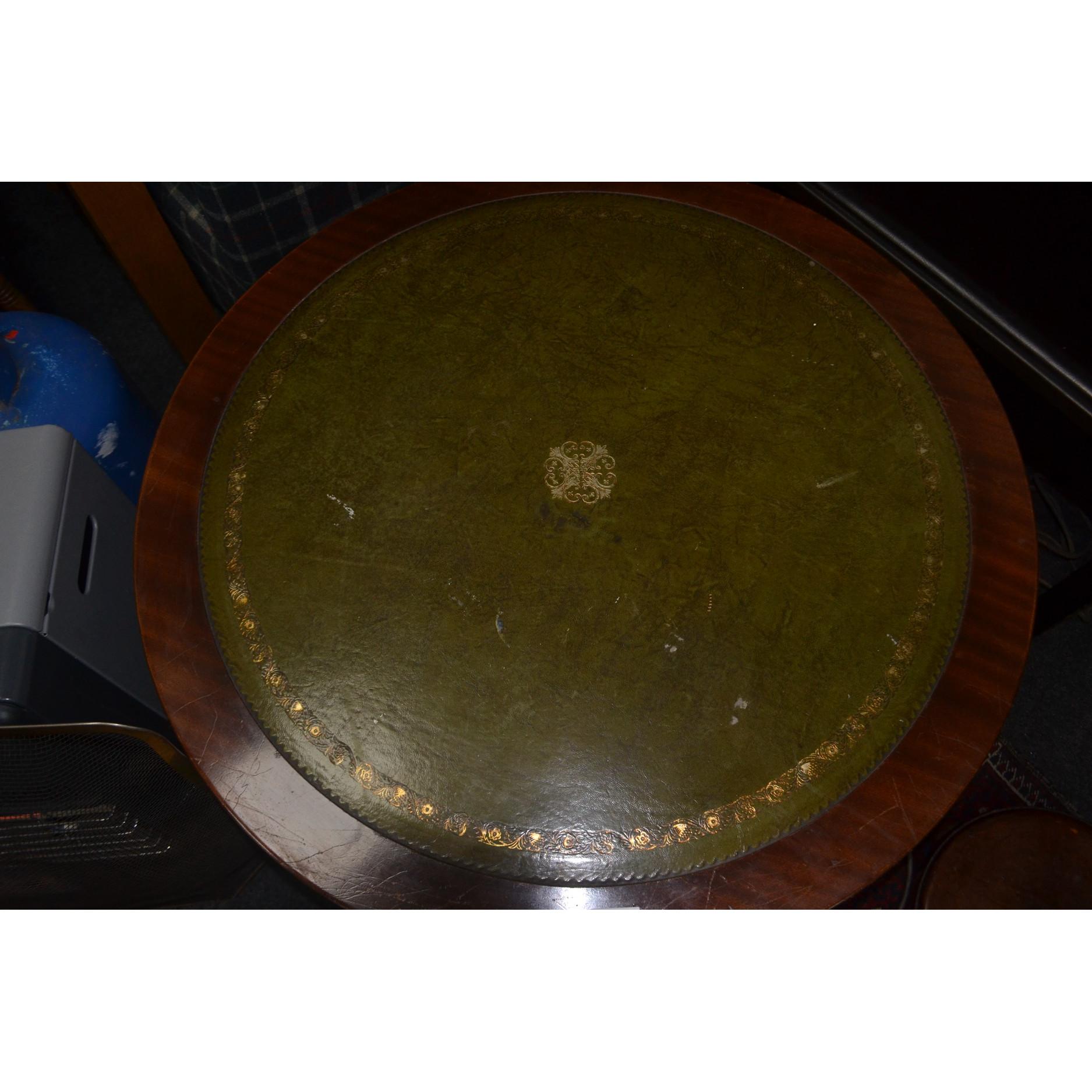 A nice reproduction drum table with a green inlaid leather style topH: 55cm approx D: 88cm approx