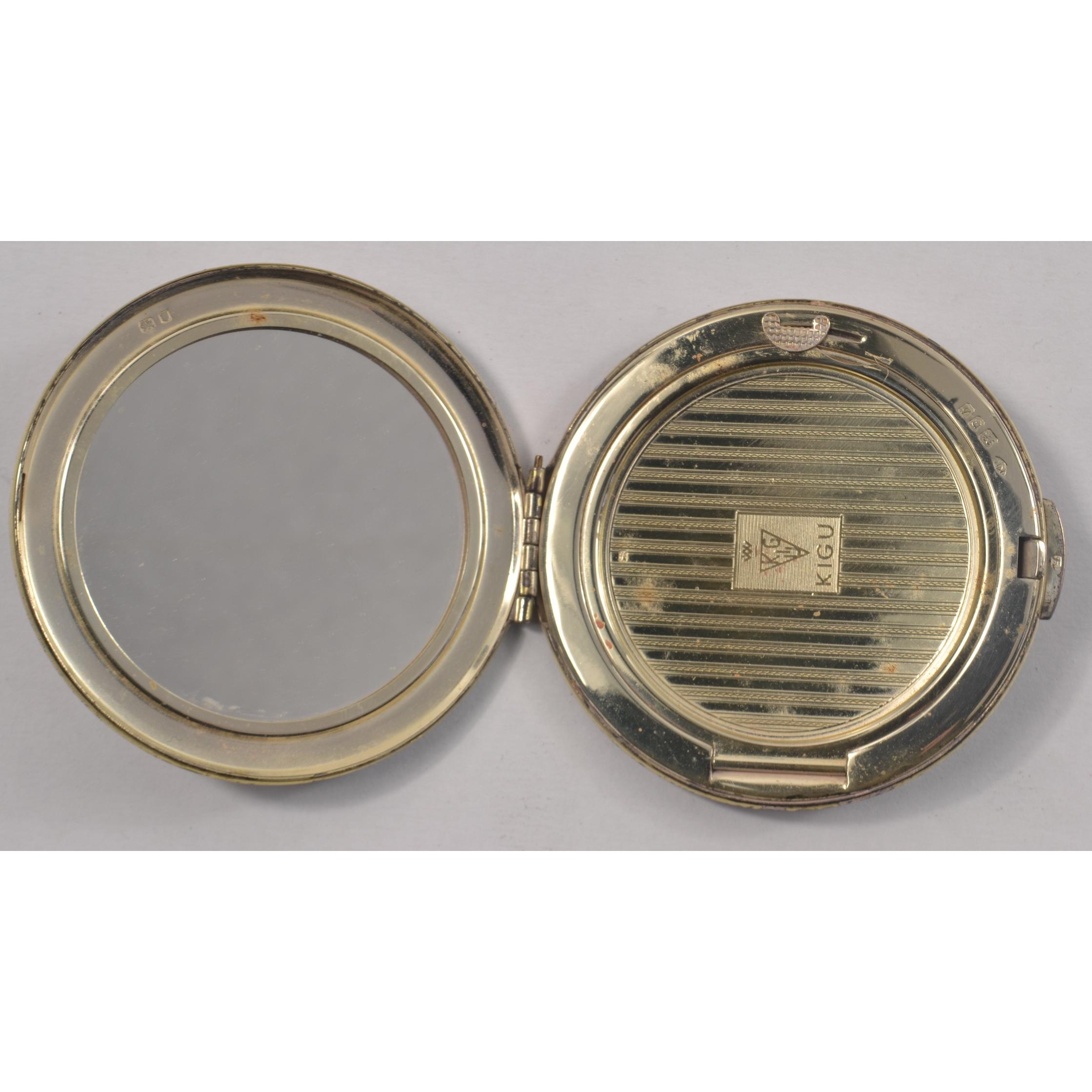 Hallmarked Silver KIGU powder compact. MMH monigrame on front in floral design [London 1963 ]D: 6.5cm diam approx