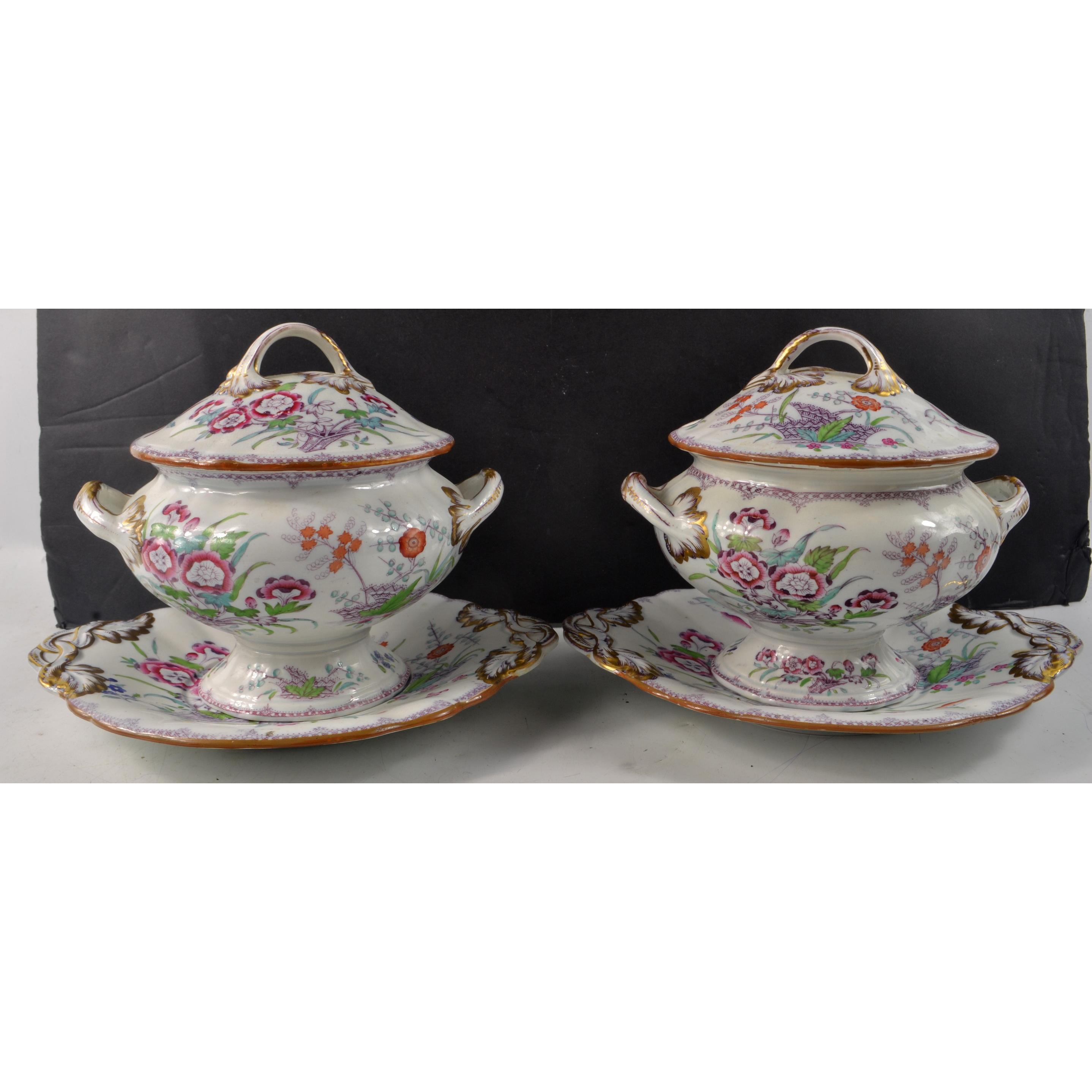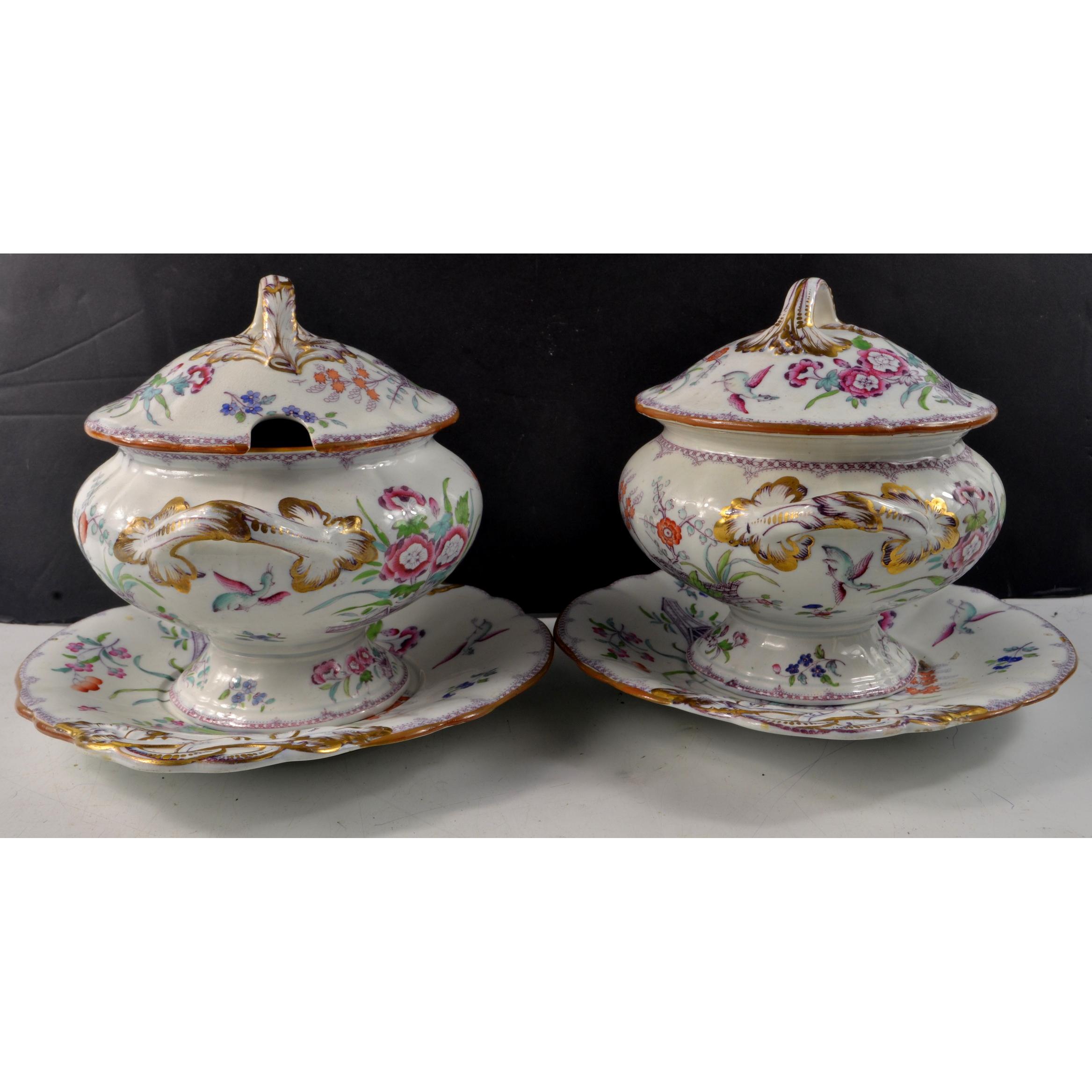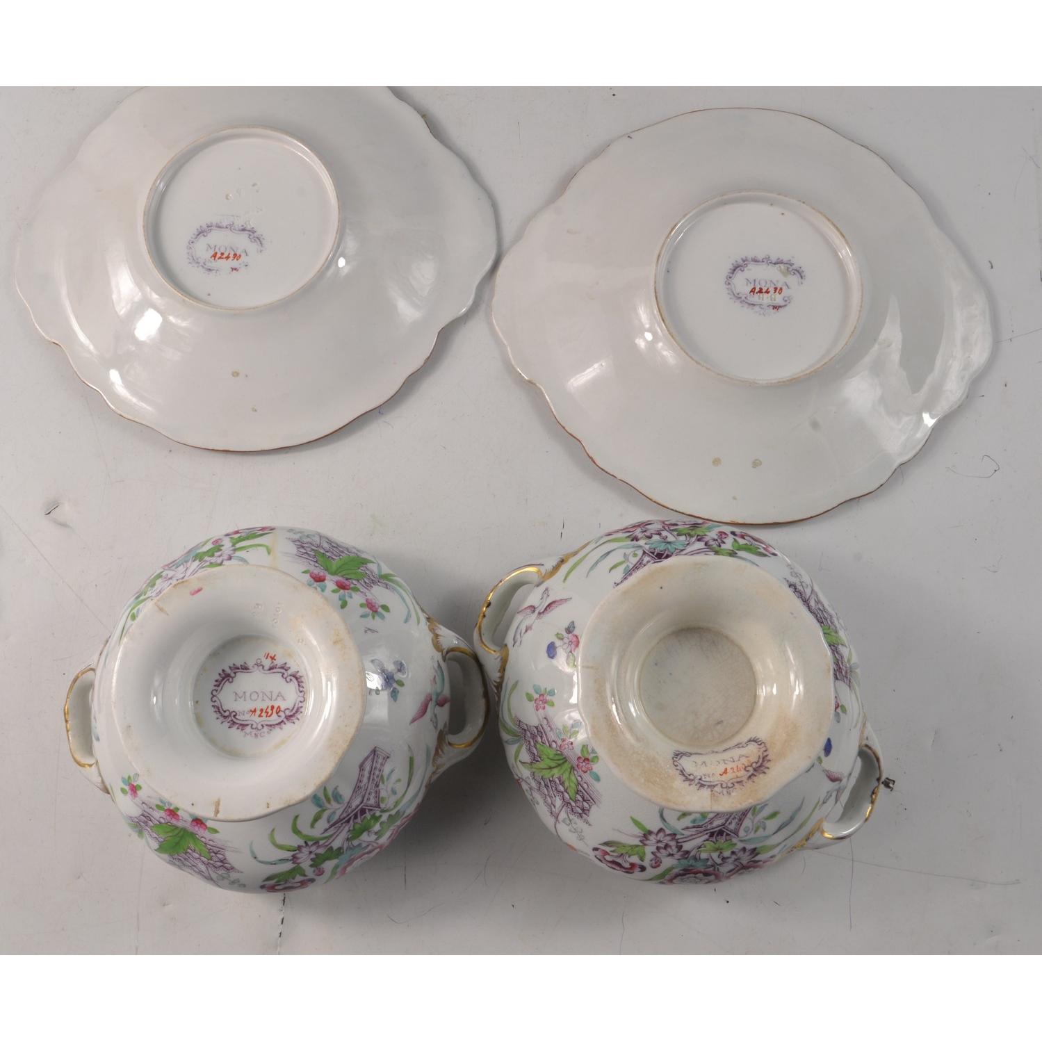 A pair of c1880’s MONA ceramic Floral decorative lidded Tureens H: 16cm approx D: 22cm approx Approx 4 pieces