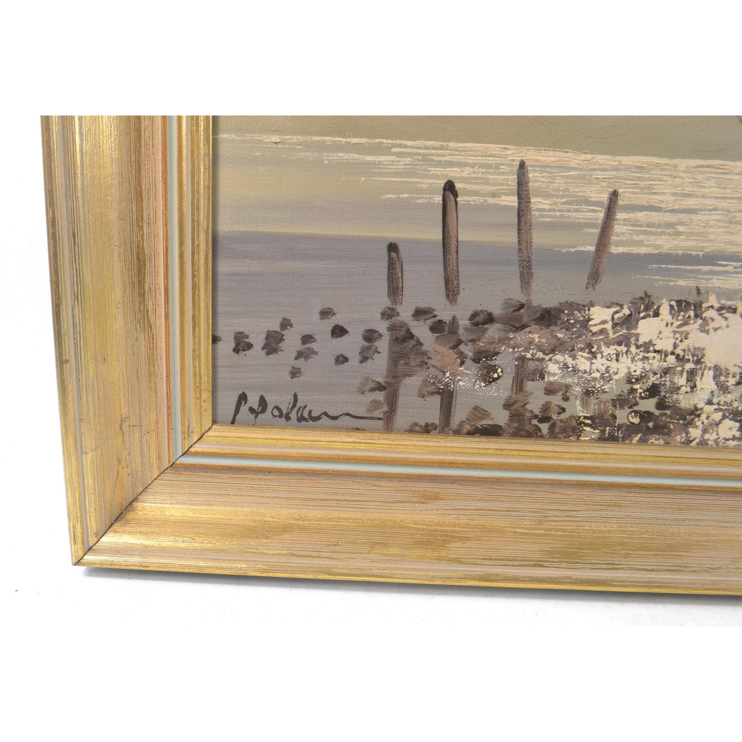 An oil painting c1950’s of a ship in full sail harboured artist signature indistinct L: 77cm approx H: 56cm approx