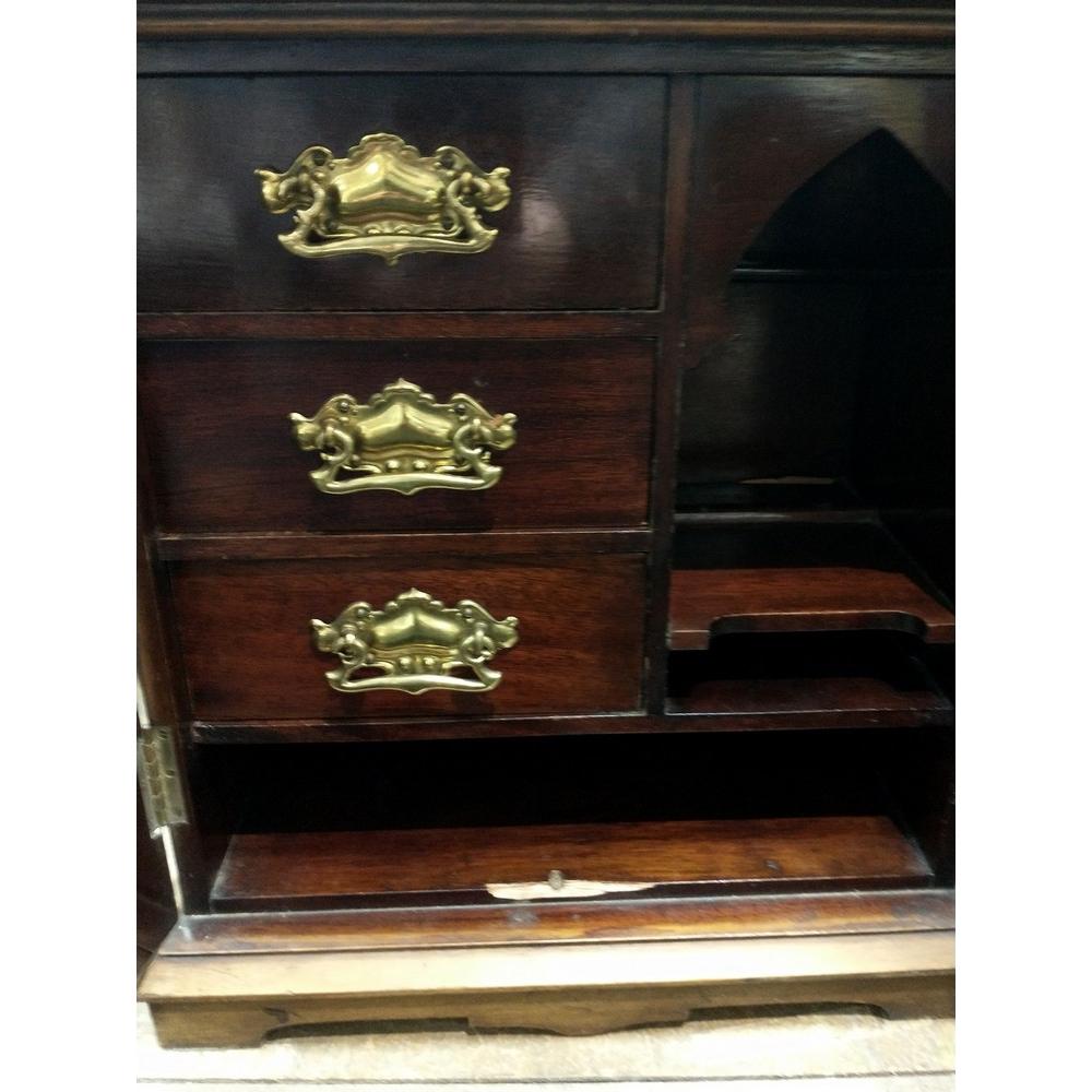 A nice QUALITY! small cabinet with key, hand painted doors and fitted drawers inside L: 25cm approx H: 40cm approx