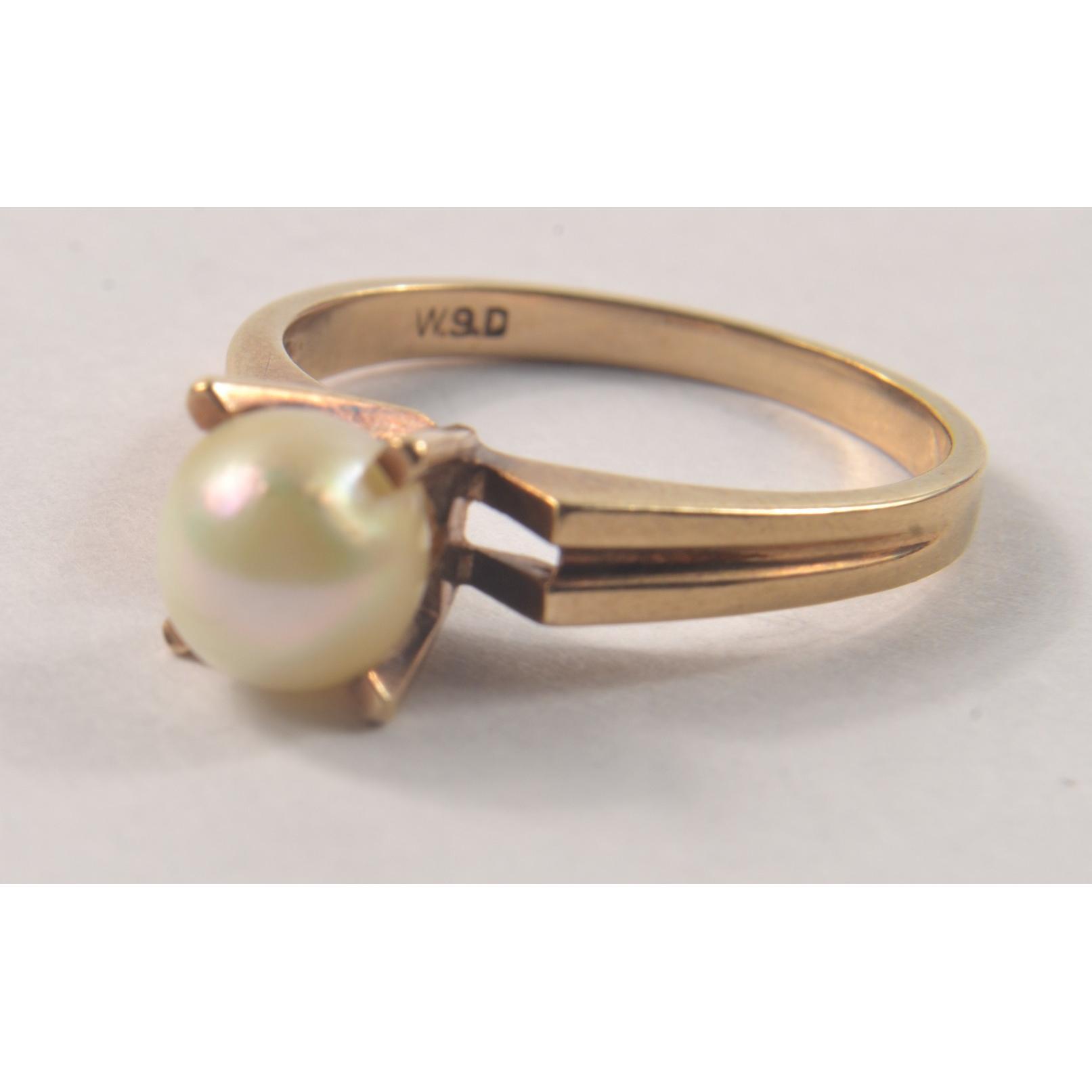 9ct Yellow Gold Ladies Ring set with a single 5mm Pearl.[size N]Gross weight approx 2.6grms