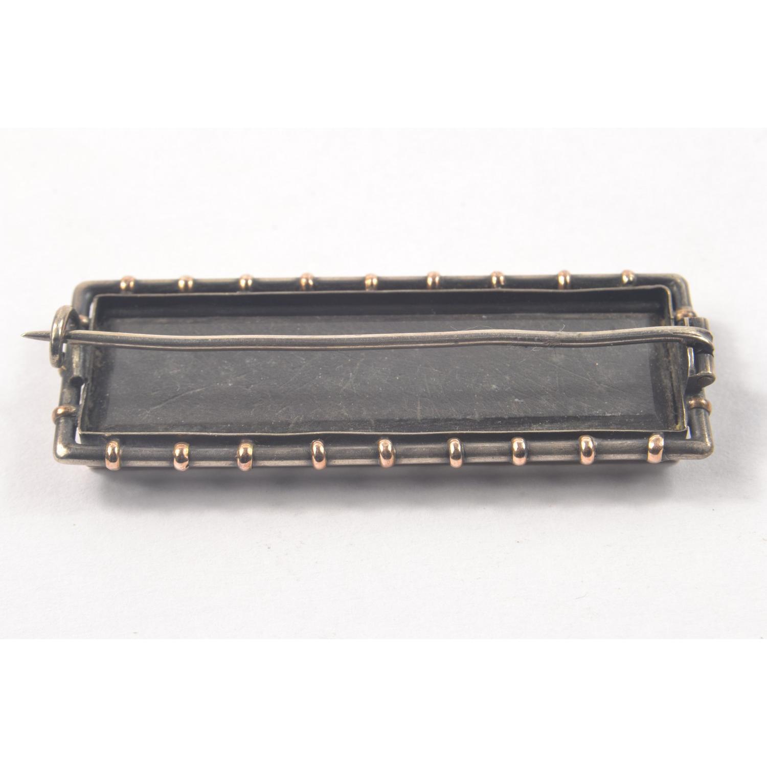 Lovely vintage Black based Floral designed Micro Mosaic bar brooch, set in a white with gold highlights metal frame. [L;5cmx 2cm approx]Gross weight approx 1.01grms