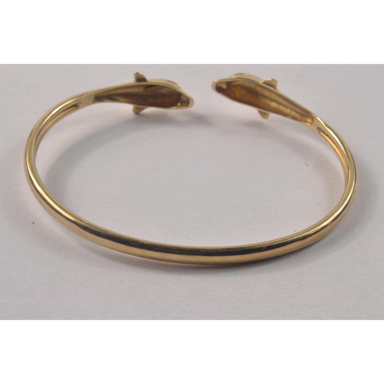585 Stamped Yellow Gold double headed Dolphin bracelet D: 7cm diam approx Gross weight approx 9.7grms