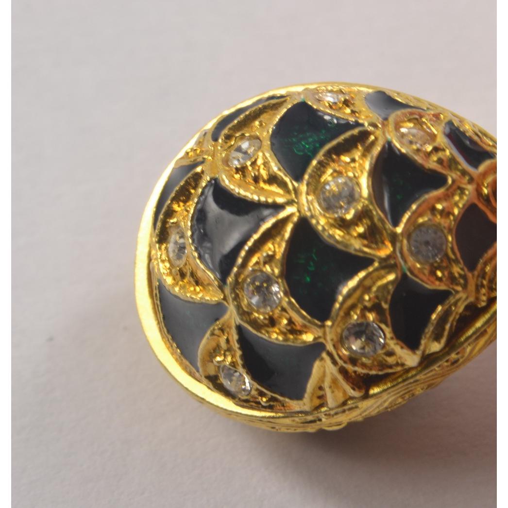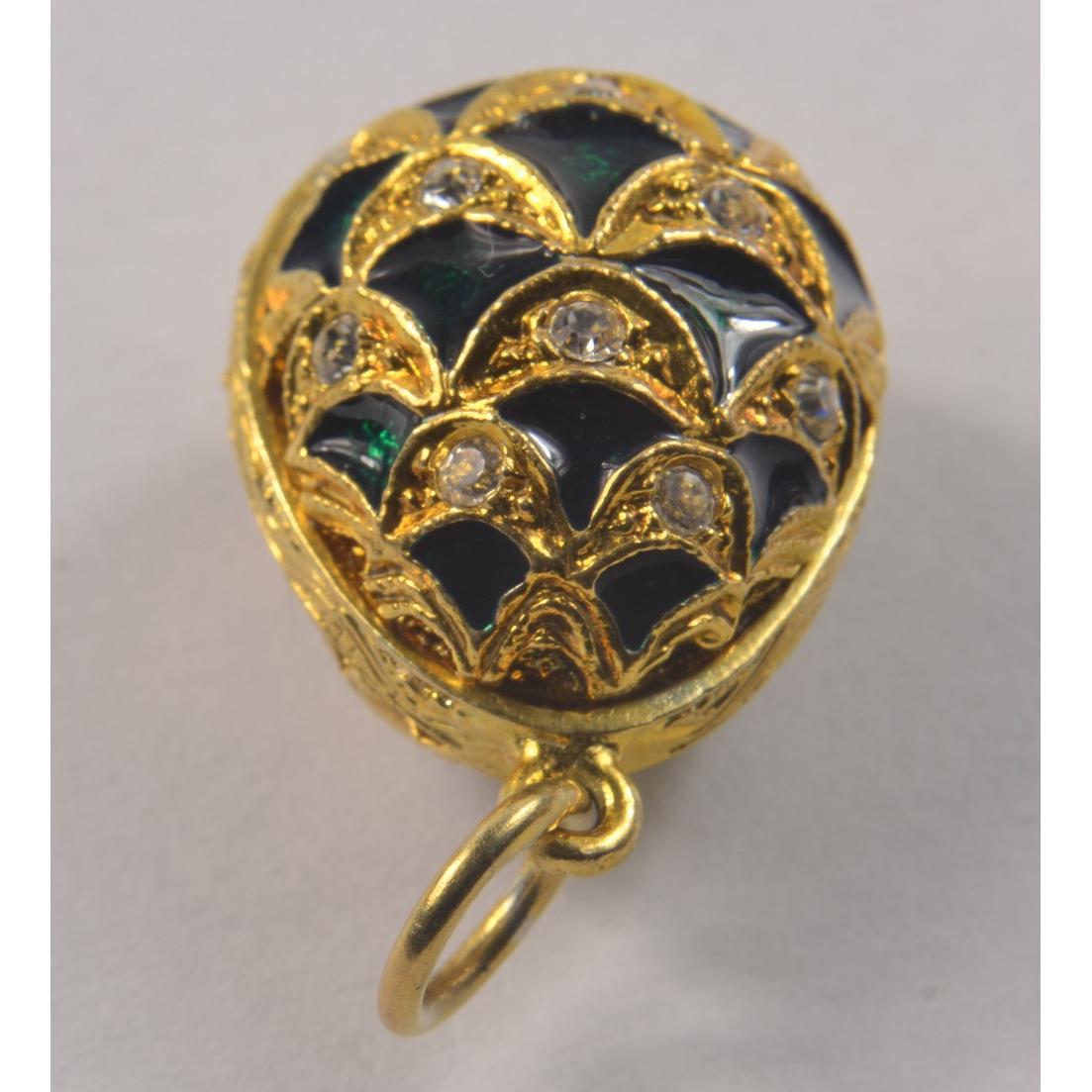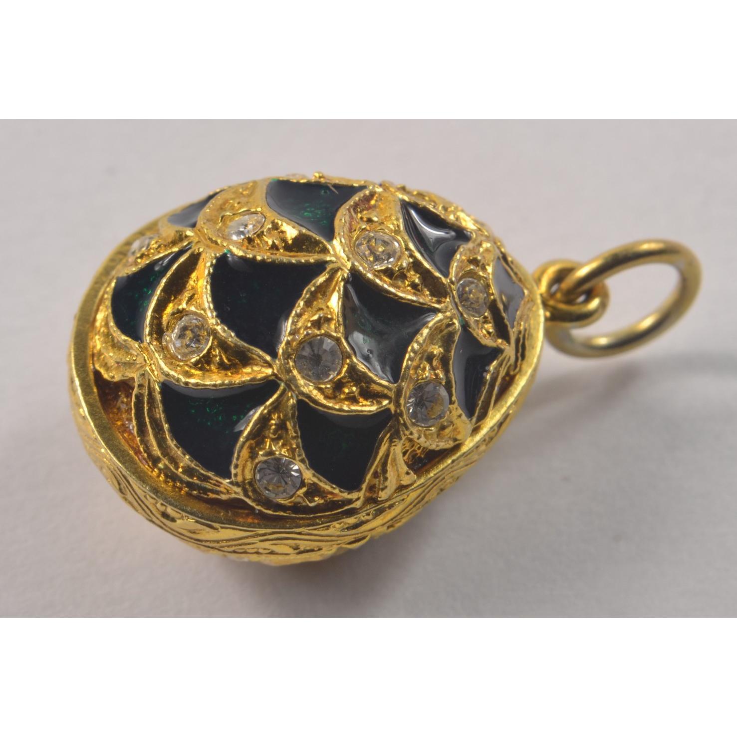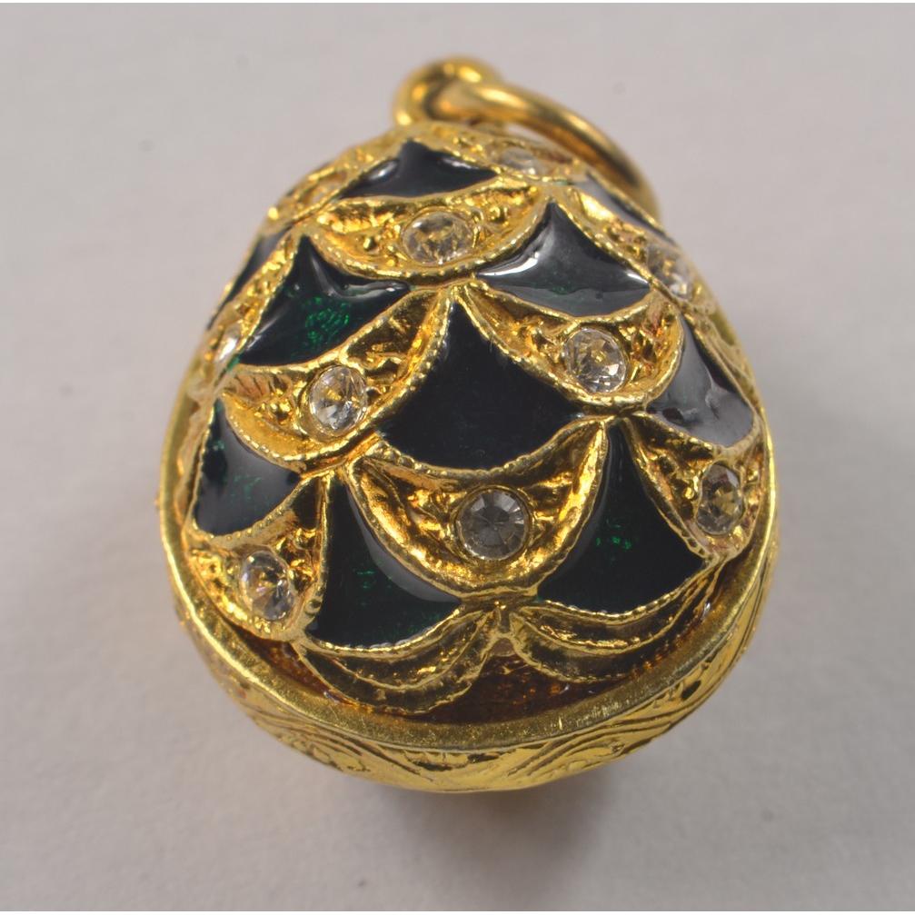 Lovely Yellow metal FABERGE style green enamel and white stone set egg charm/ pendant [L 2cm ]Gross weight approx 7.6grms