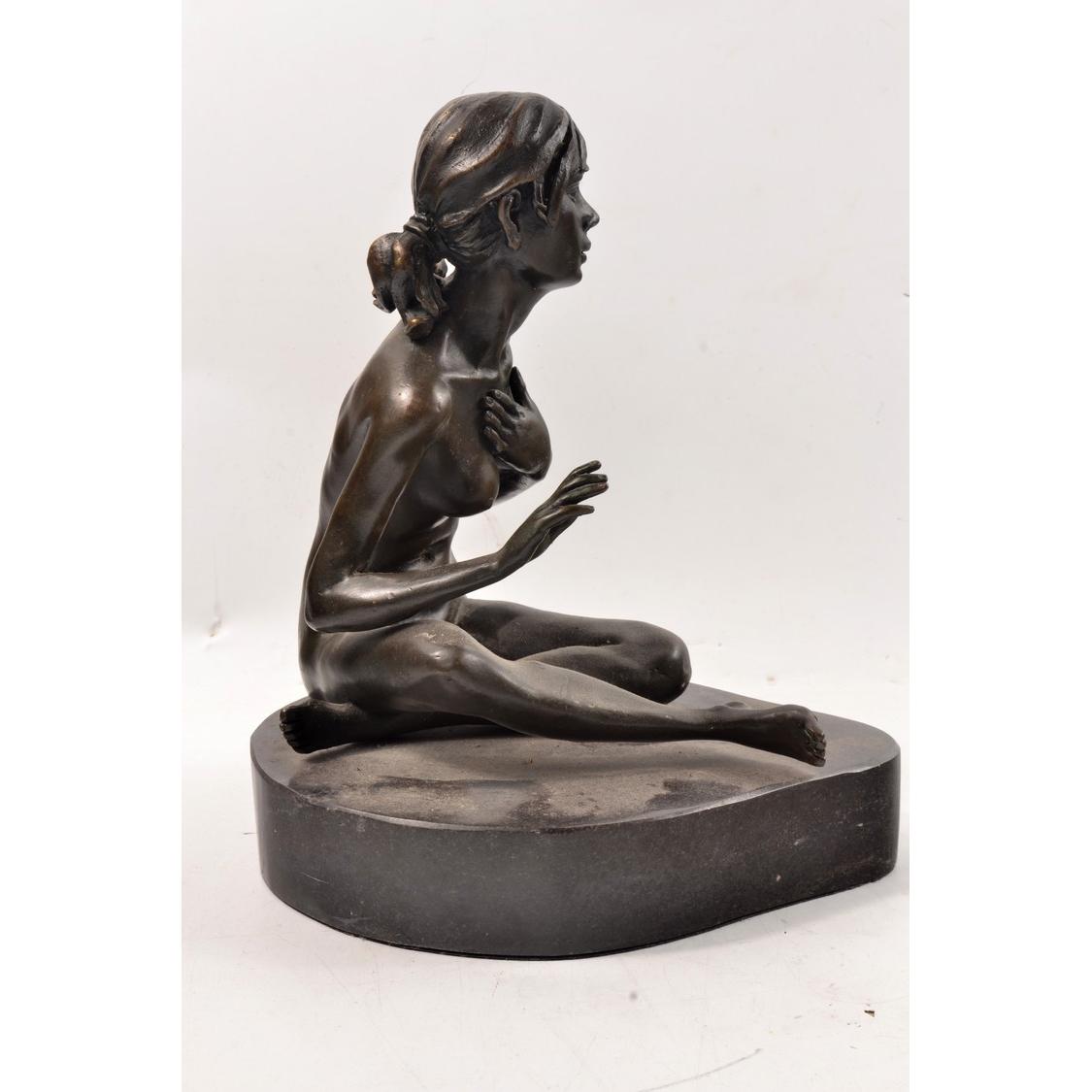 Signed Aldo Vitaleh Nude SittingFemale Bronze Sculpture- nice quality! Bronze figurine and base, widest point dimension givenW: 20cm approx H: 25cm approx