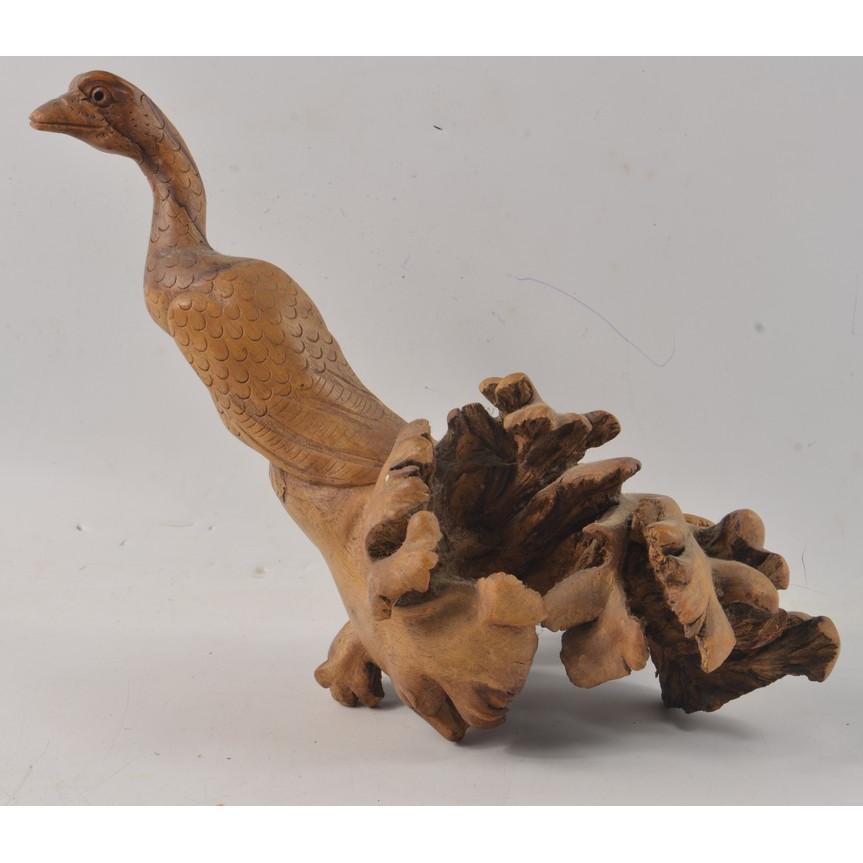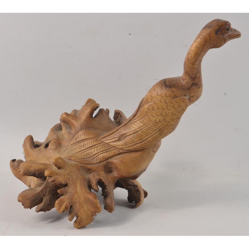 HIGHLY UNUSUAL Is it a peacock or is it a dinosaur head ? Stands 20cm high carved from a single piece of burl