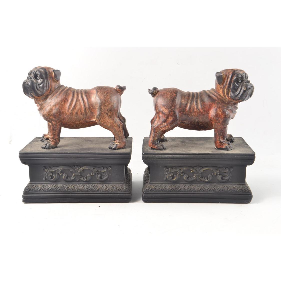 Pair of ANTIQUE STYLE BULLDOG BOOKENDS standing on a decorative plinth 18cm x 18cm x 15.5cm.