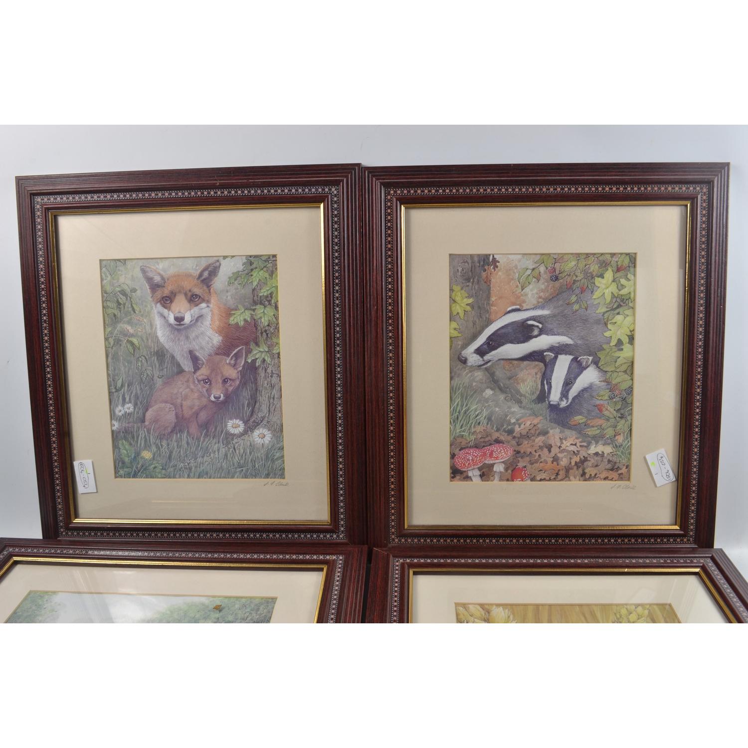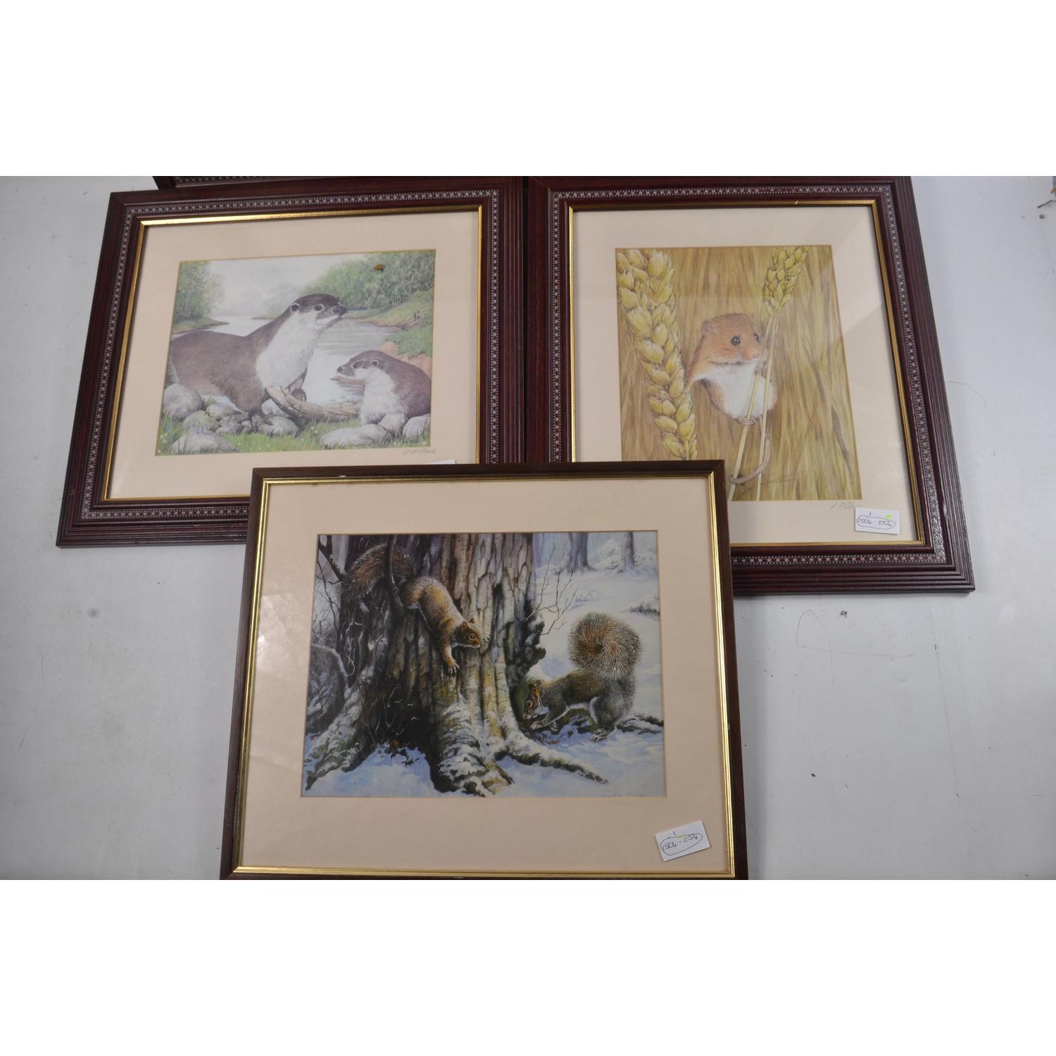A collection of Animal Prints to include, otters, badgers, foxes and a fieldmouse all signed in pencil by JF CLARK plus one of squirrels unsigned.Approx 5 pieces