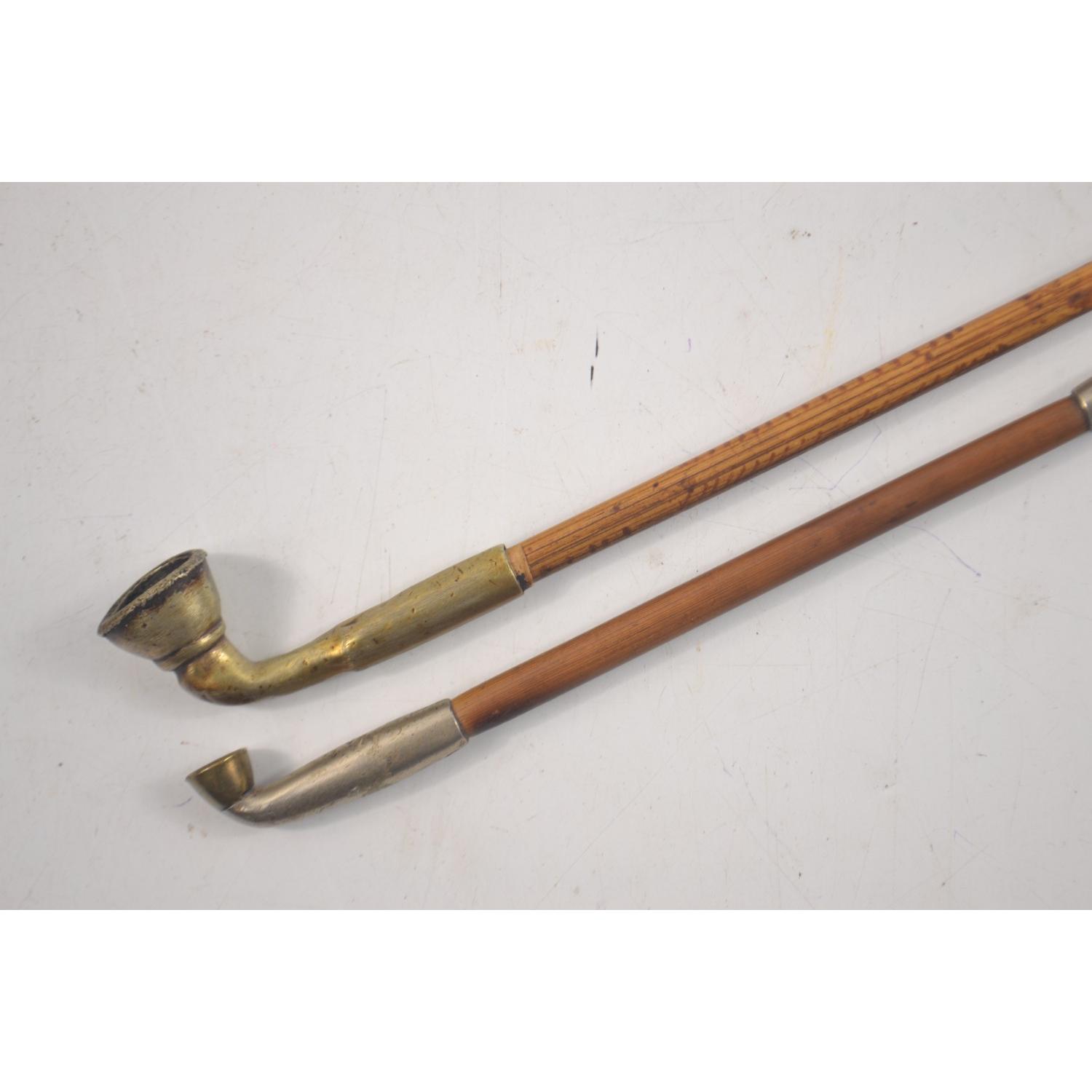 Two VINTAGE ORIENTAL OPIUM Pipes, one large 37cm and one medium sized 23.5cm lengthApprox 2 pieces