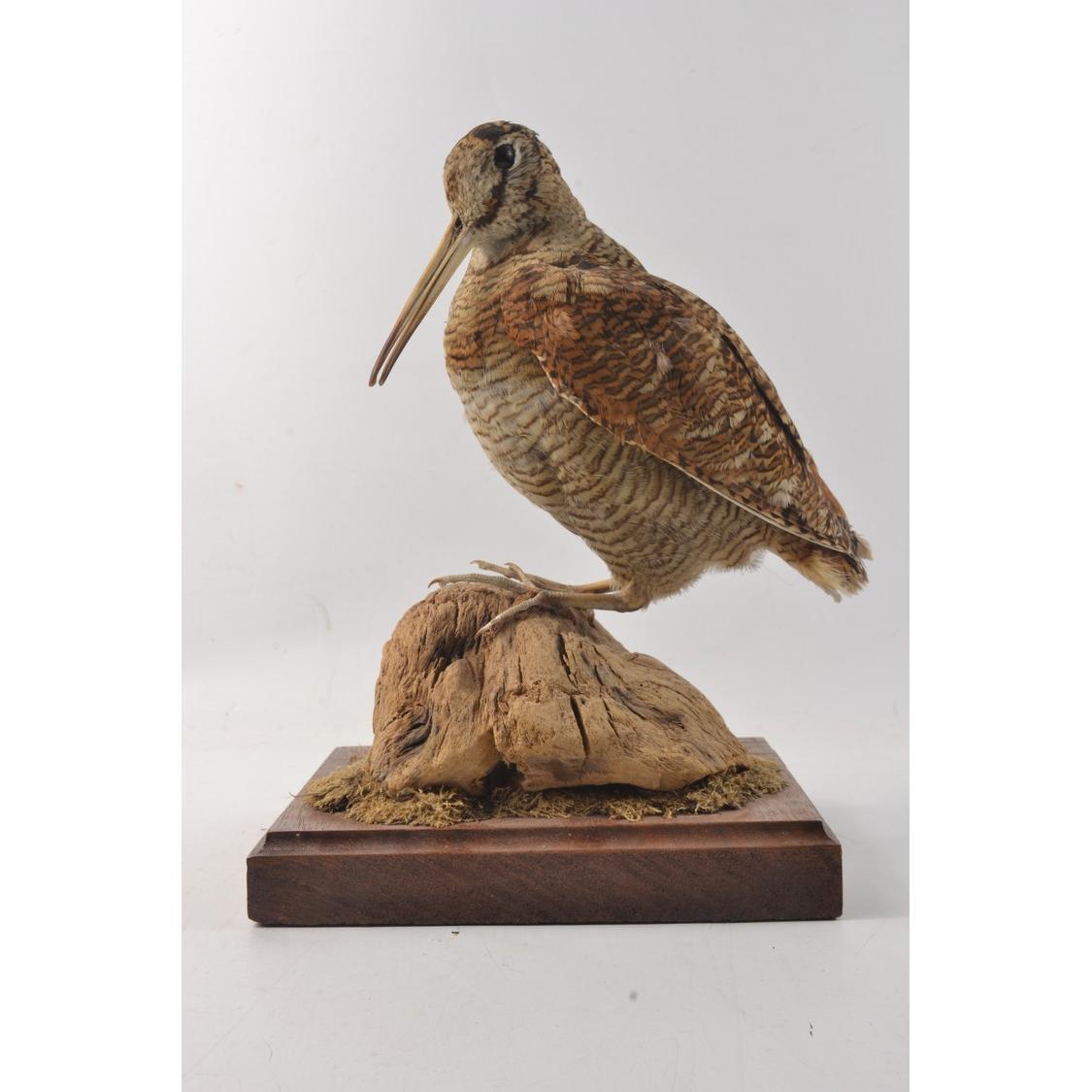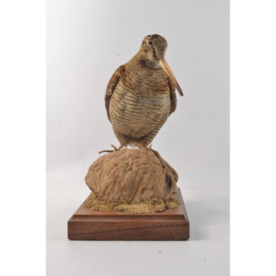 Warning: getimagesize(../../img/17_12_20/medium/27.JPG): failed to open stream: No such file or directory in /var/www/auction.peeblesonline.co.uk/front/picture/index.php on line 27 A taxidermy WOODCOCK bird perched on a faux rock in good condition on modern c1980's wooden and moss covered plynth - a... - Peebles Auction House