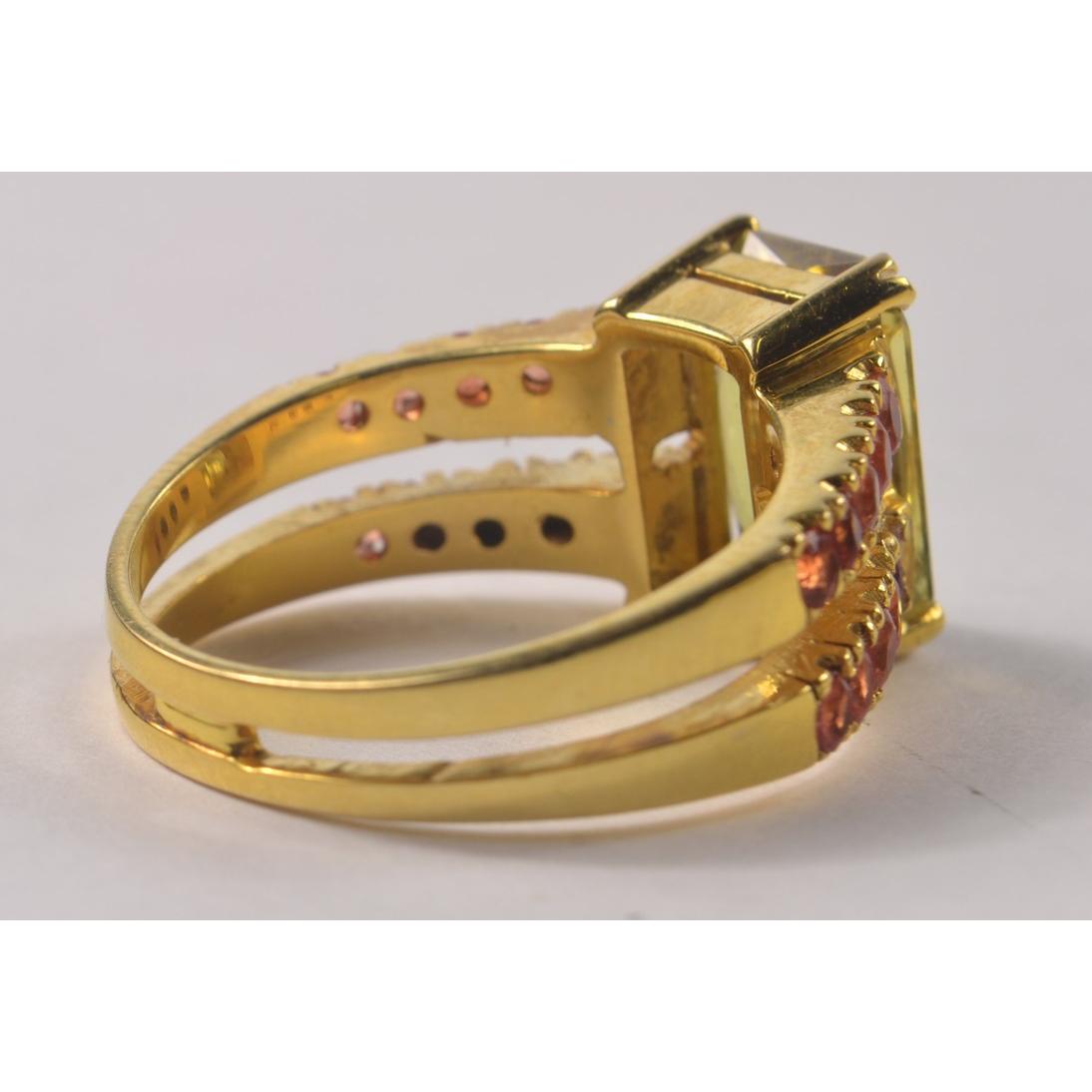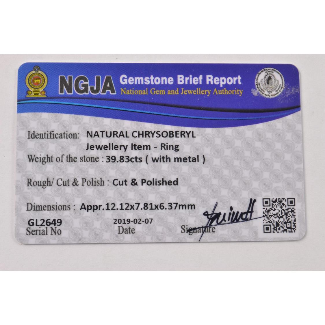 EXTRAVAGANT! 18ct(plus) yellow gold ring with a large CHRYSOBERYL gem inset with pink Sri Lankan SAPPHIRES and with paper and card guarantees 2019 ring size Q/P gross weight 7.93g