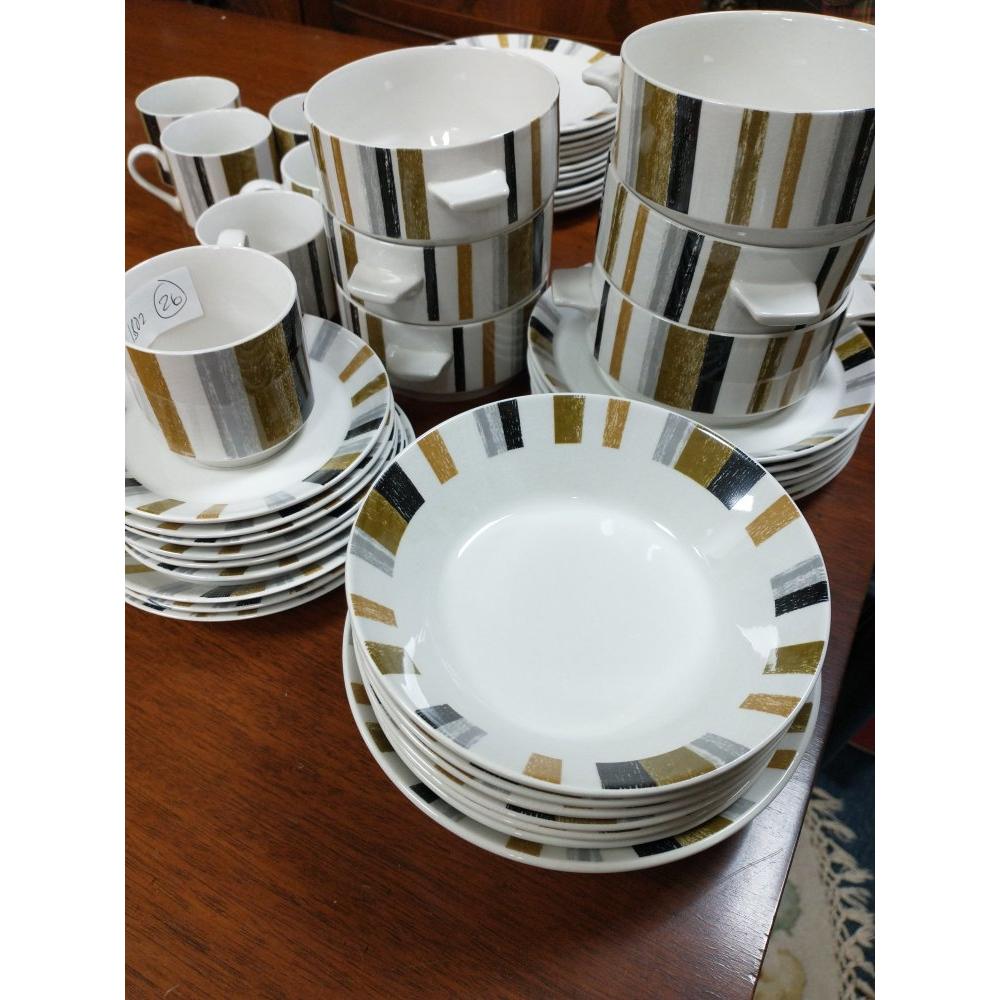 RETRO MIDWINTER tableware Queensbury Brown & Black striped pattern by Staffordshire Coffee set and soup bowls and saucers to match, side plates, saucers cups, sandwich plate totalling 50 pieces