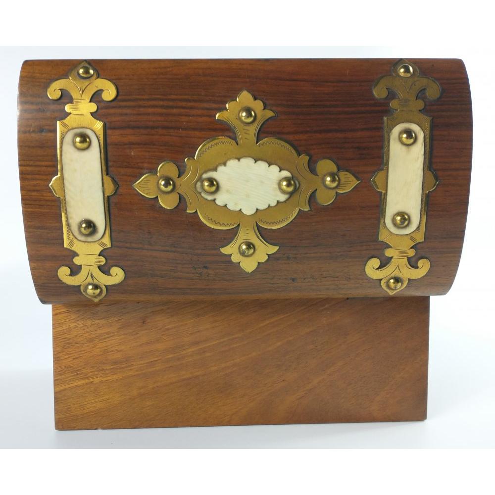 A small nice quality brass escutcheon and bone decorated tea caddy with two lidded compartments L: 20cm approx H: 11cm approx D: 12cm approx